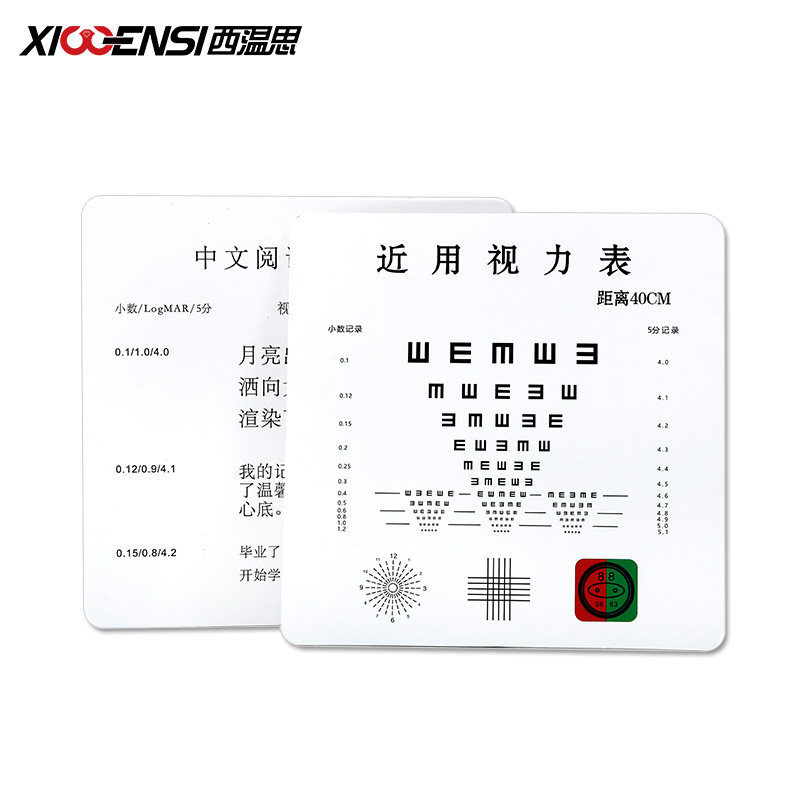 近用视力表中文阅读视标E字标准对数视力卡散光表红绿对比十字线