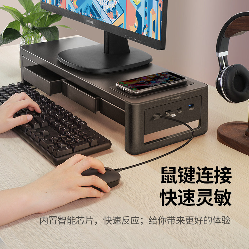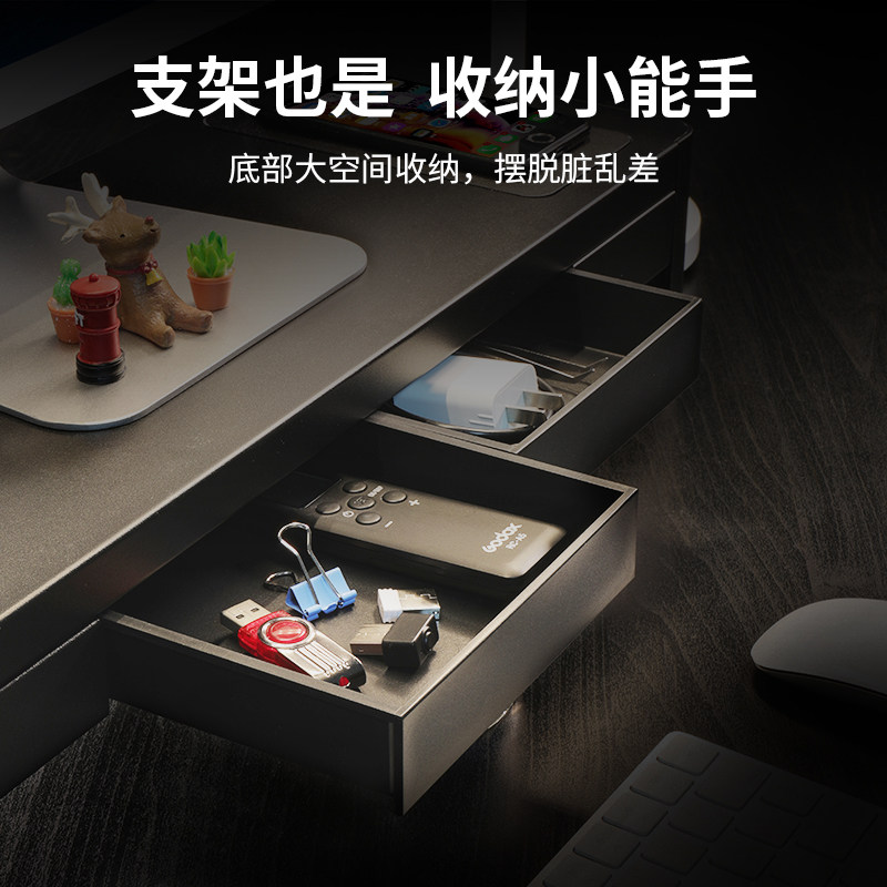 鹿为带抽屉金属款电脑显示器增高架台式屏幕办公室笔记本桌面置物