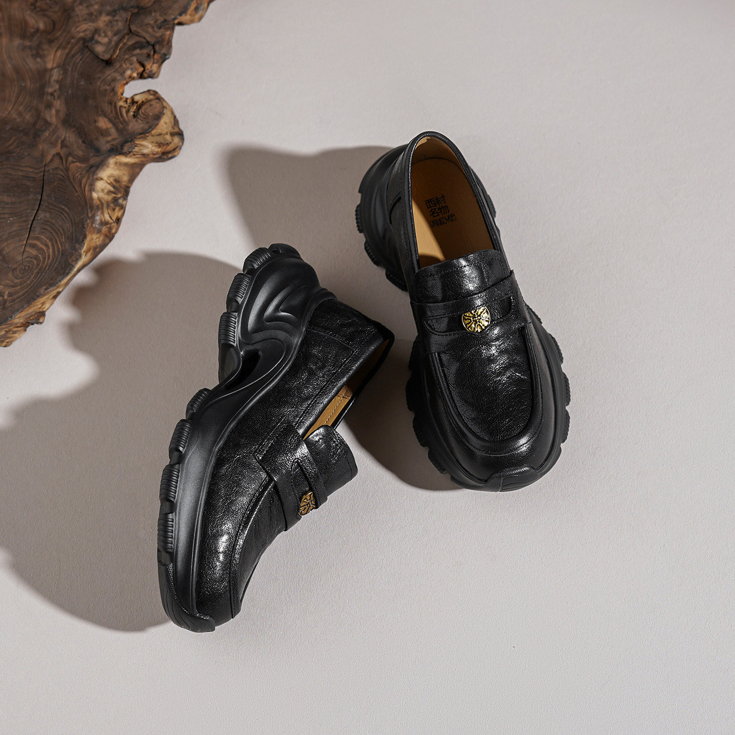 西村名物2026春季新款英伦风真皮厚底乐福鞋女一脚蹬黑色金属扣