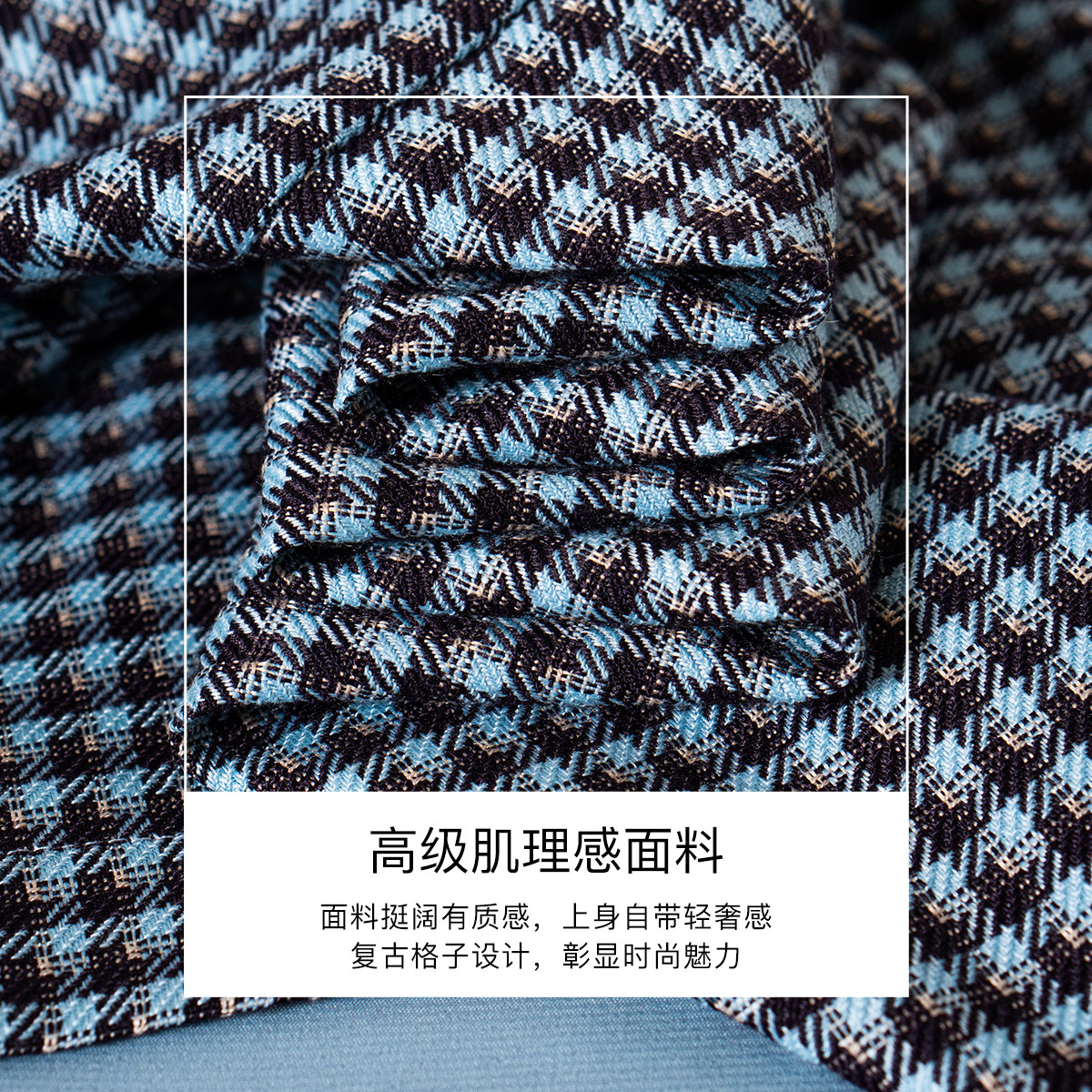 311线报网描述:复古格子 收腰设计 大摆版型 肌理感面料