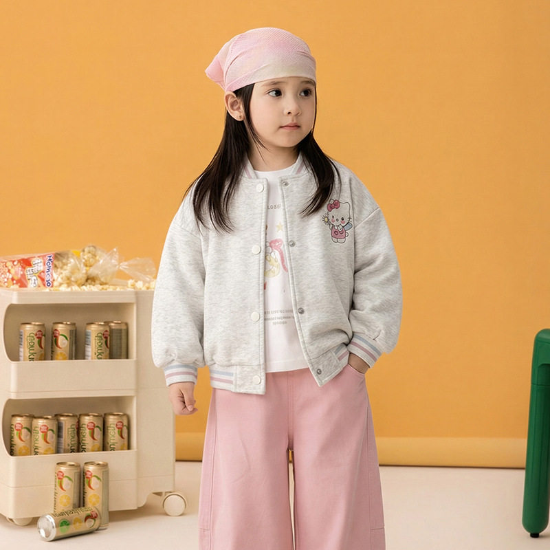 女童棒球服春装2026新款中小童女孩洋气韩版刺绣棉双面KT猫咪外套