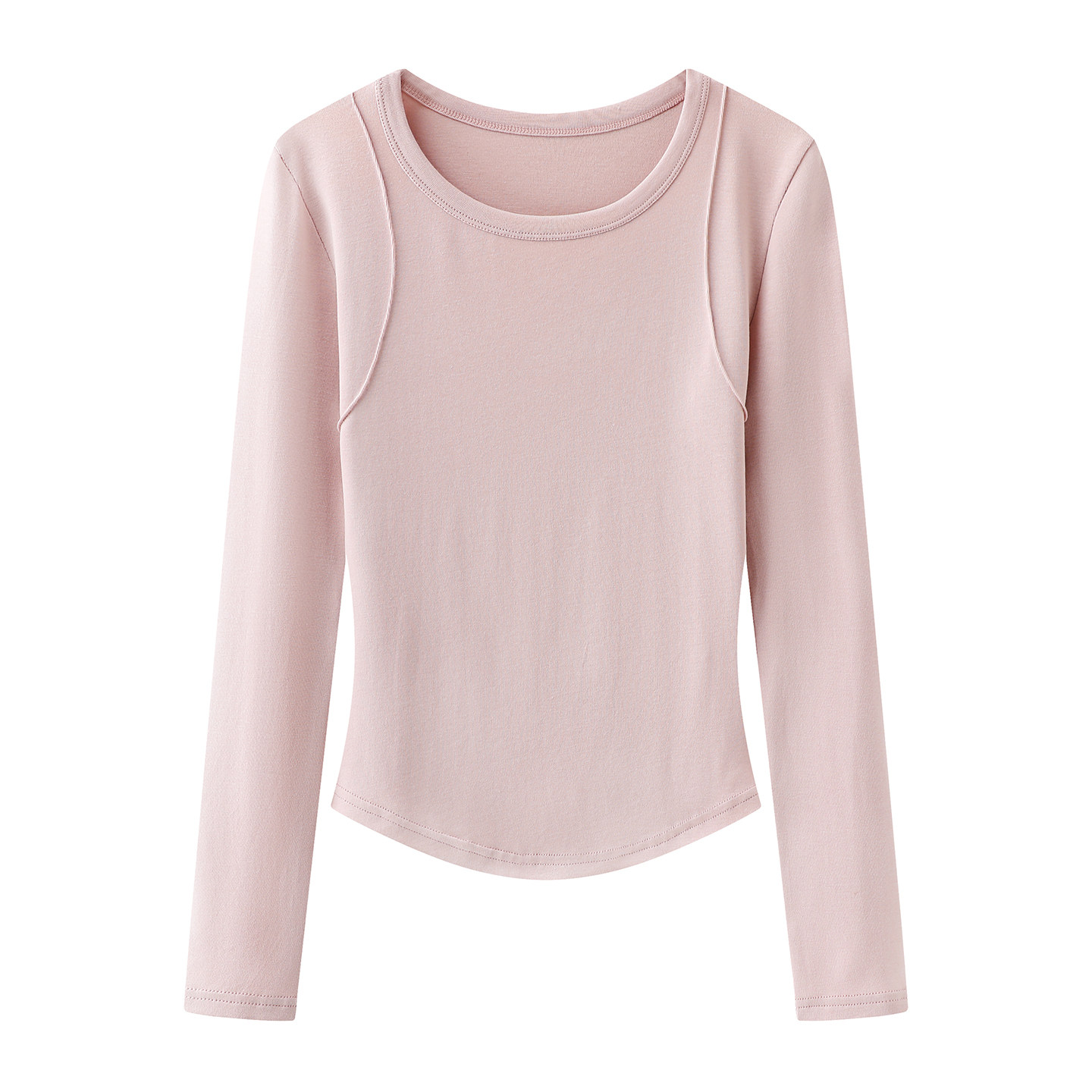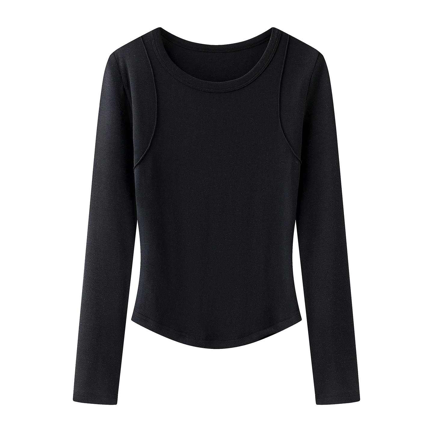 鱼骨短款长袖T恤打底衫女早春内搭薄款2026新款修身露腰正肩上衣