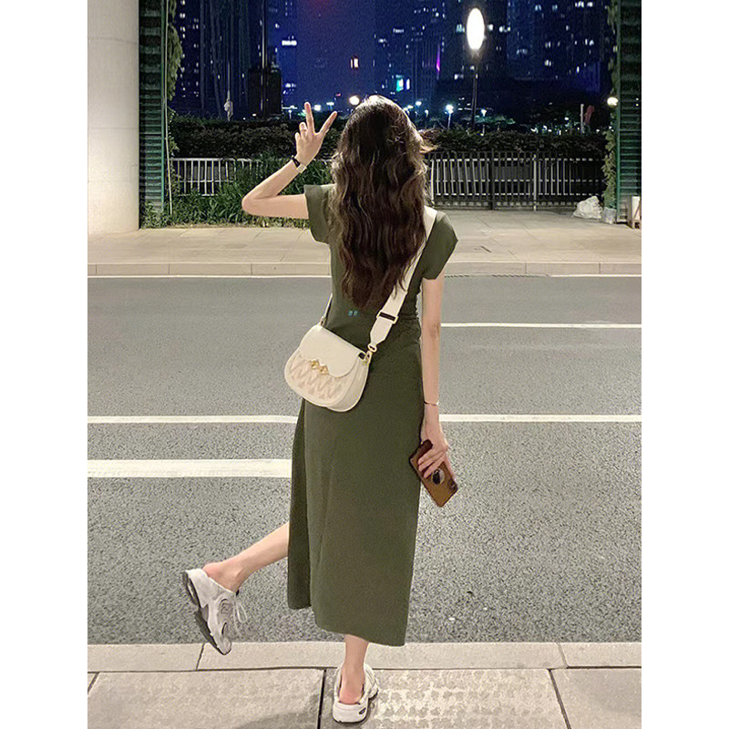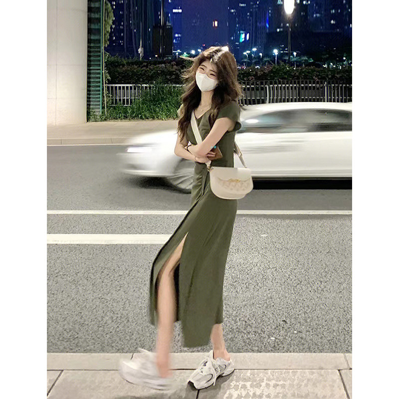 150小矮个子法式高级感开叉连衣裙女收腰a字气质中长款针织裙xs夏