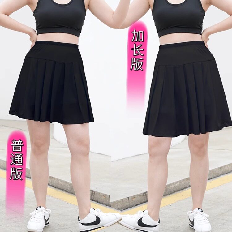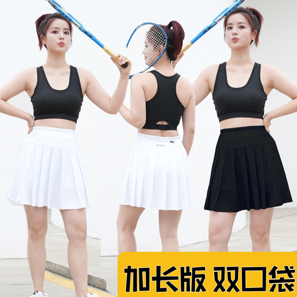 加长版运动中裙女白色舞蹈裙跑步速干裙子羽毛球短裙子带口袋大码