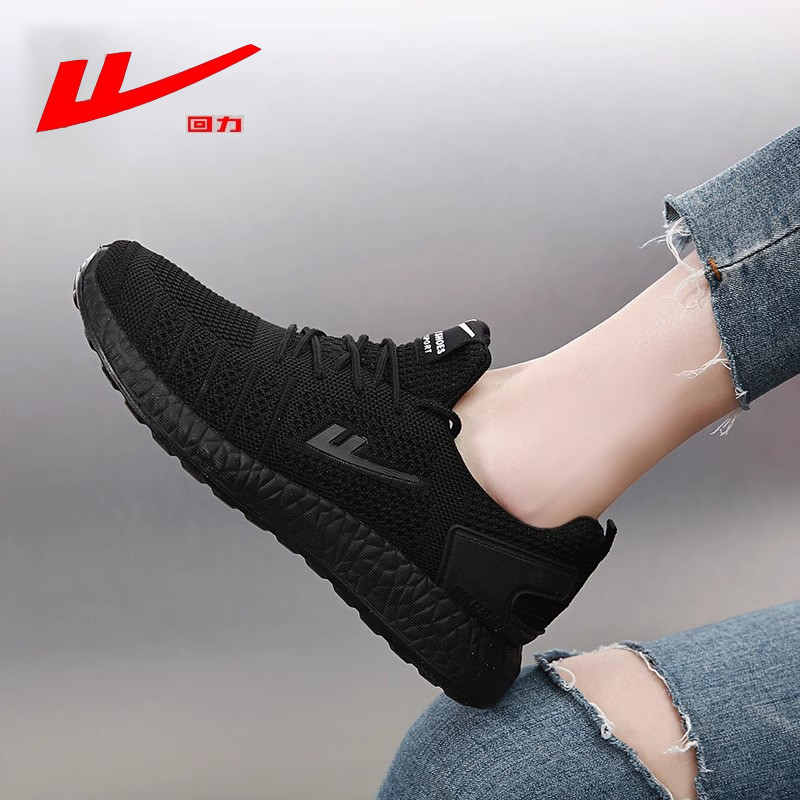 回力女鞋女款百搭小黑鞋黑色运动鞋女全黑上班黑鞋不累脚工作鞋子