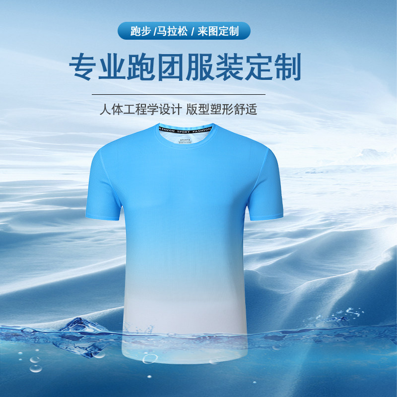 渐变色运动速干t恤定制logo透气广告衫印字马拉松跑步户外定制