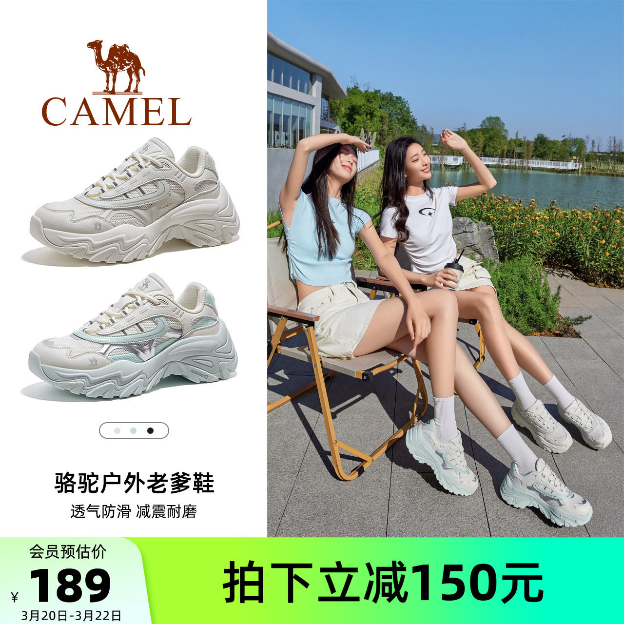 骆驼女鞋2026春季新款运动鞋女款老爹鞋透气厚底显高户外休闲鞋子
