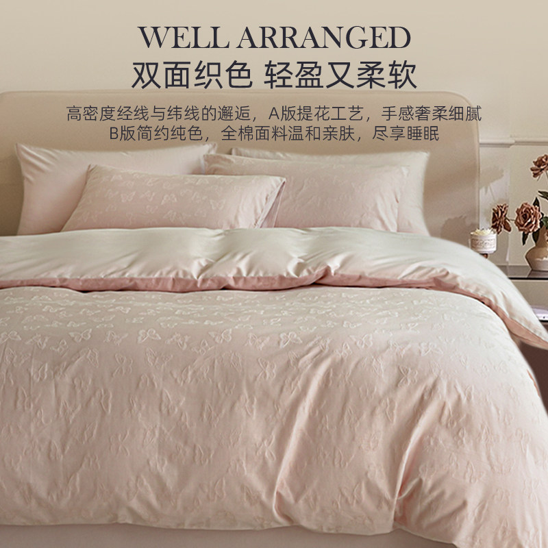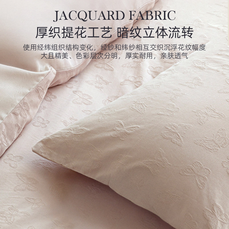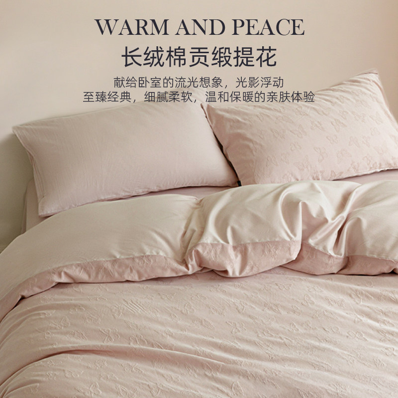 斯得福全棉提花四件套床上用品轻奢高级感纯棉床单婚庆结婚粉色