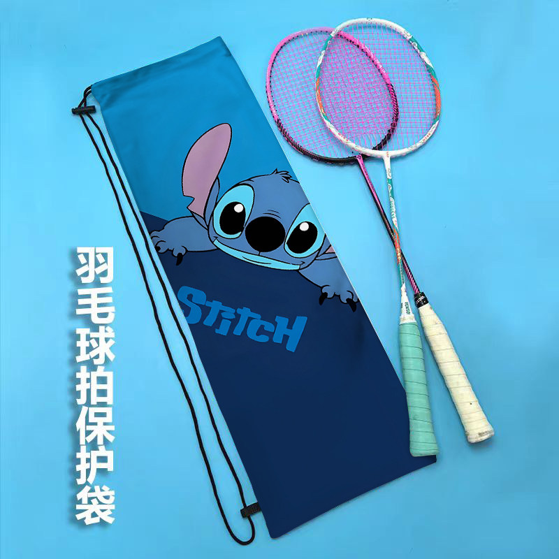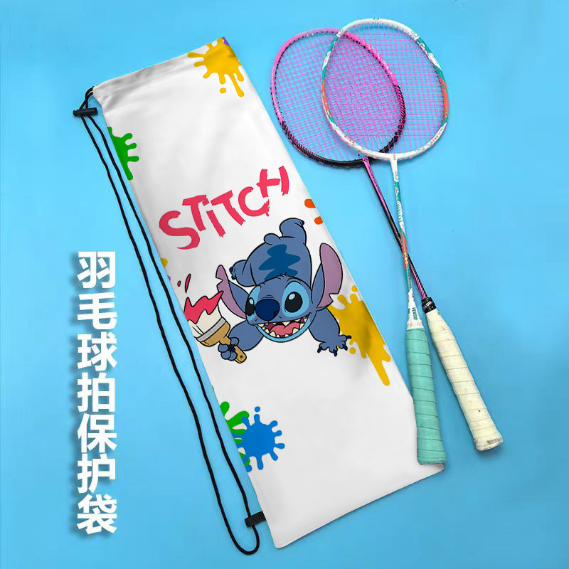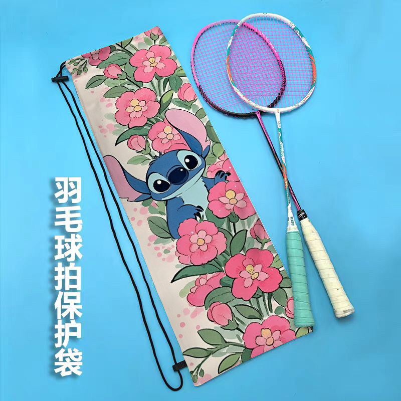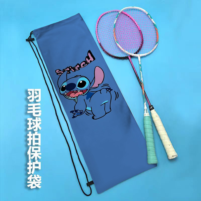 卡通史迪仔单肩运动便携抽绳束口包定制女生高颜值羽毛球拍收纳袋