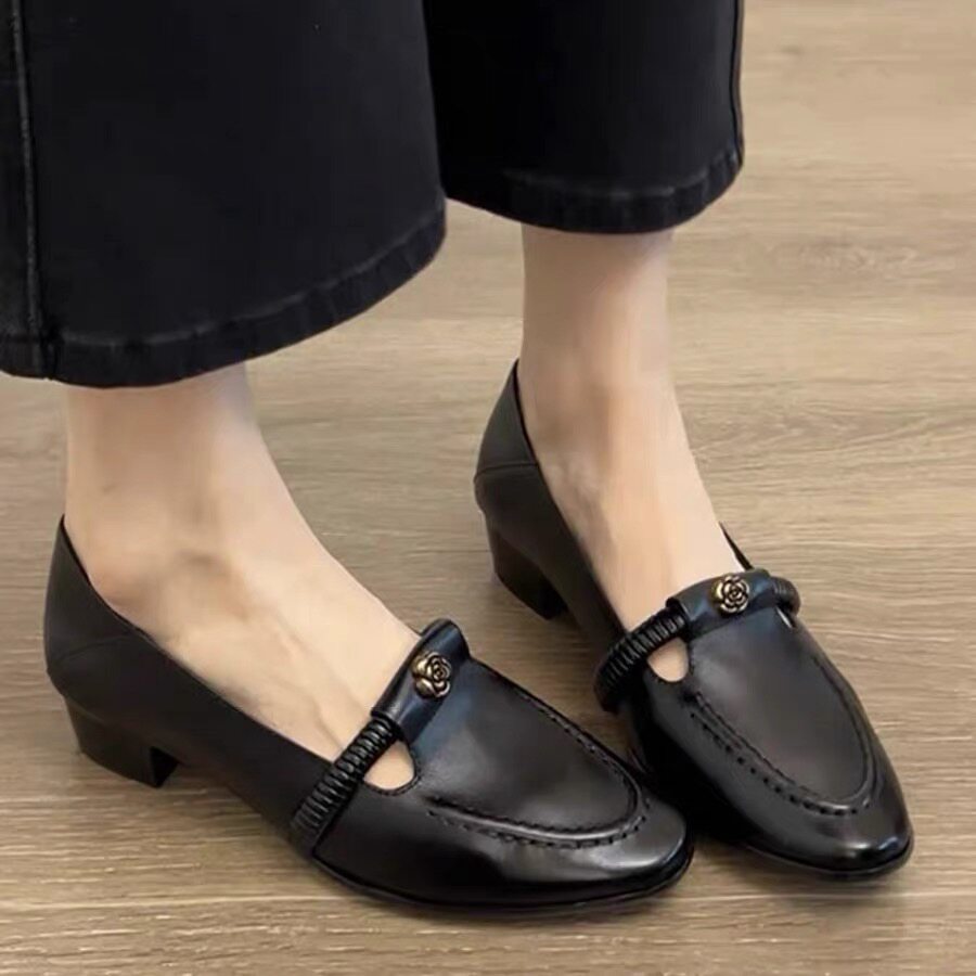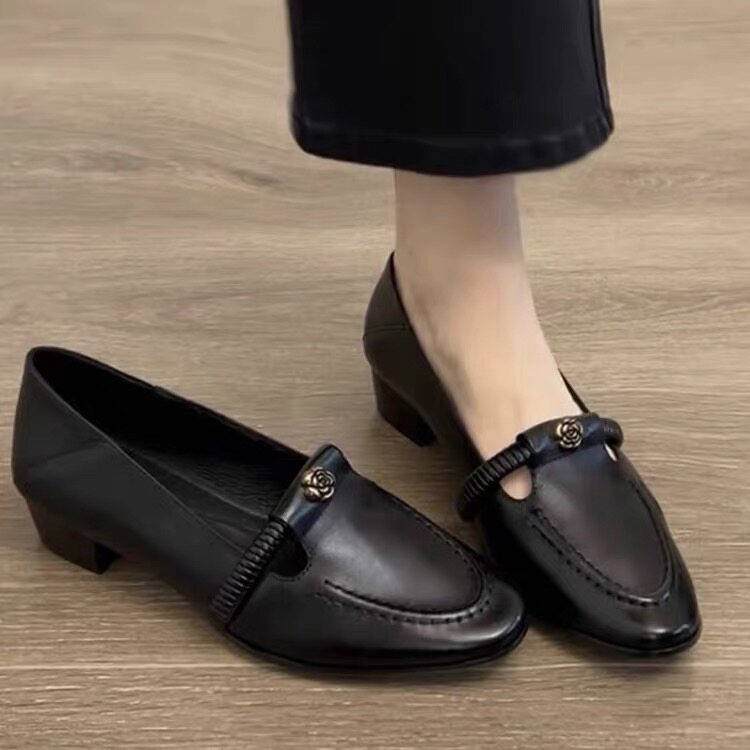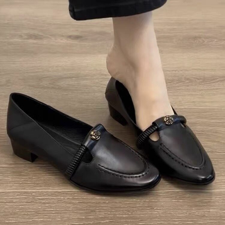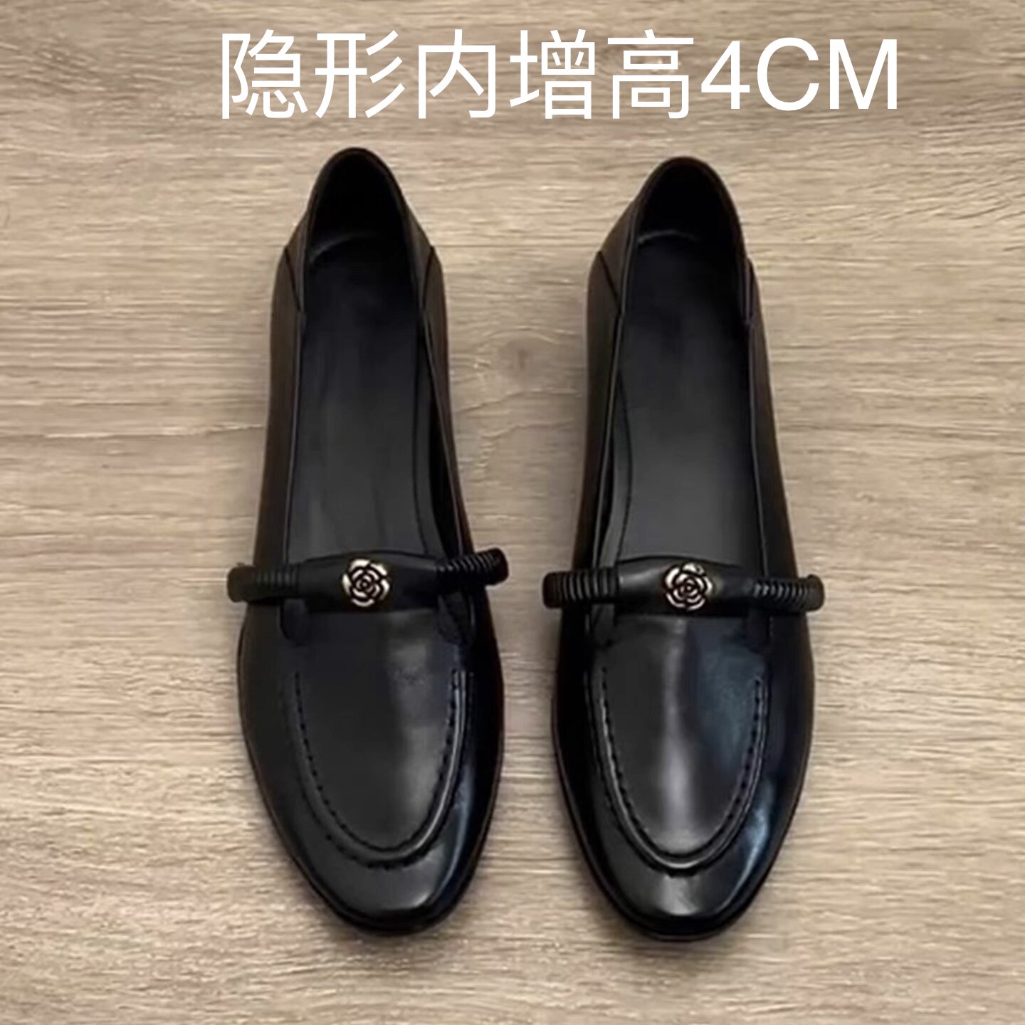超软羊皮山茶花黑色单鞋女2026春季内增高小皮鞋法式玛丽珍女鞋子