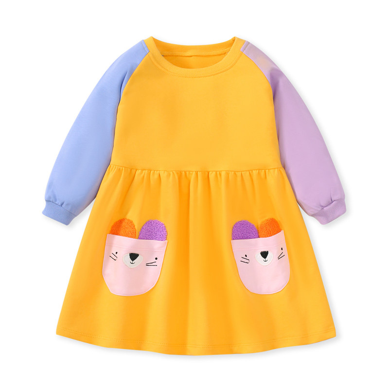 女童撞色长袖卫衣连衣裙子宝宝纯棉秋冬装儿童口袋公主裙3岁6韩版