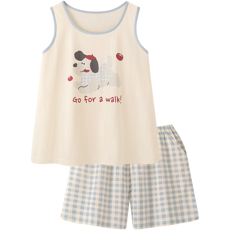 『吃番茄の狗』卡通情侣凉感纯棉睡衣女款夏男款薄背心家居服套装
