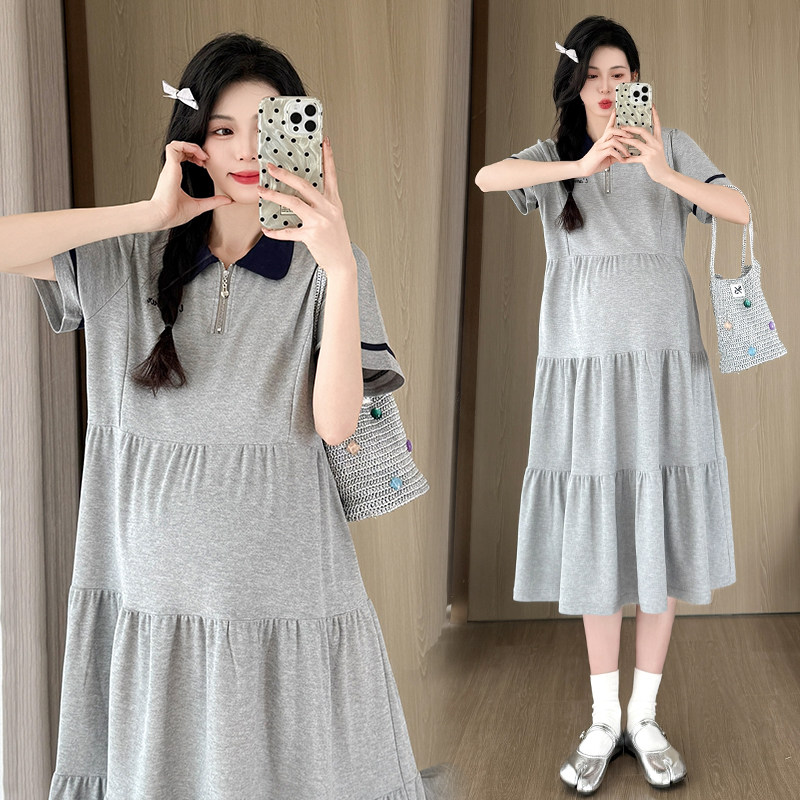 大码孕妇连衣裙2025夏季新款polo领宽松中长款洋气短袖裙子200斤
