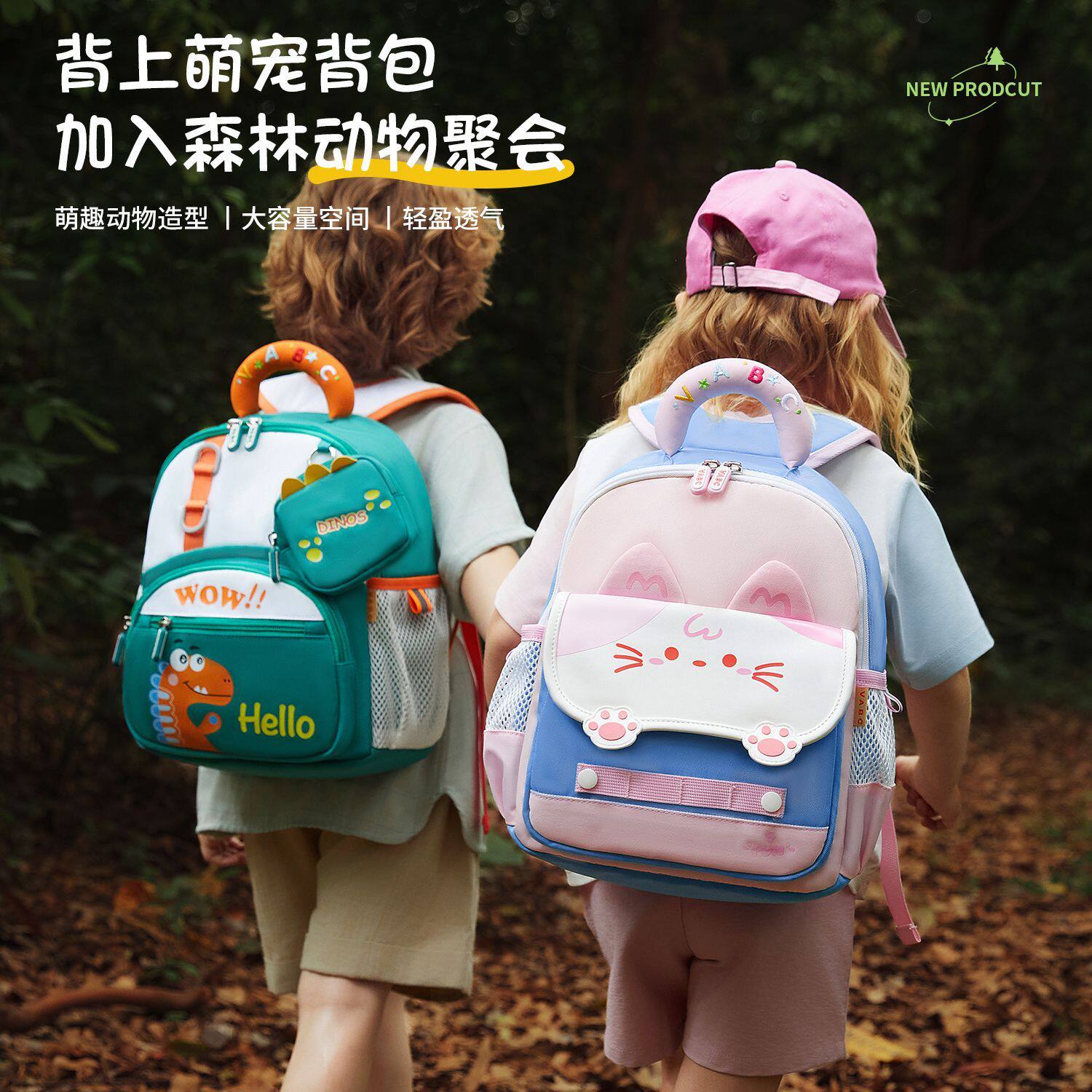 VABC儿童卡通双肩包男童女孩可爱书包幼儿园户外出行超轻宝宝背包