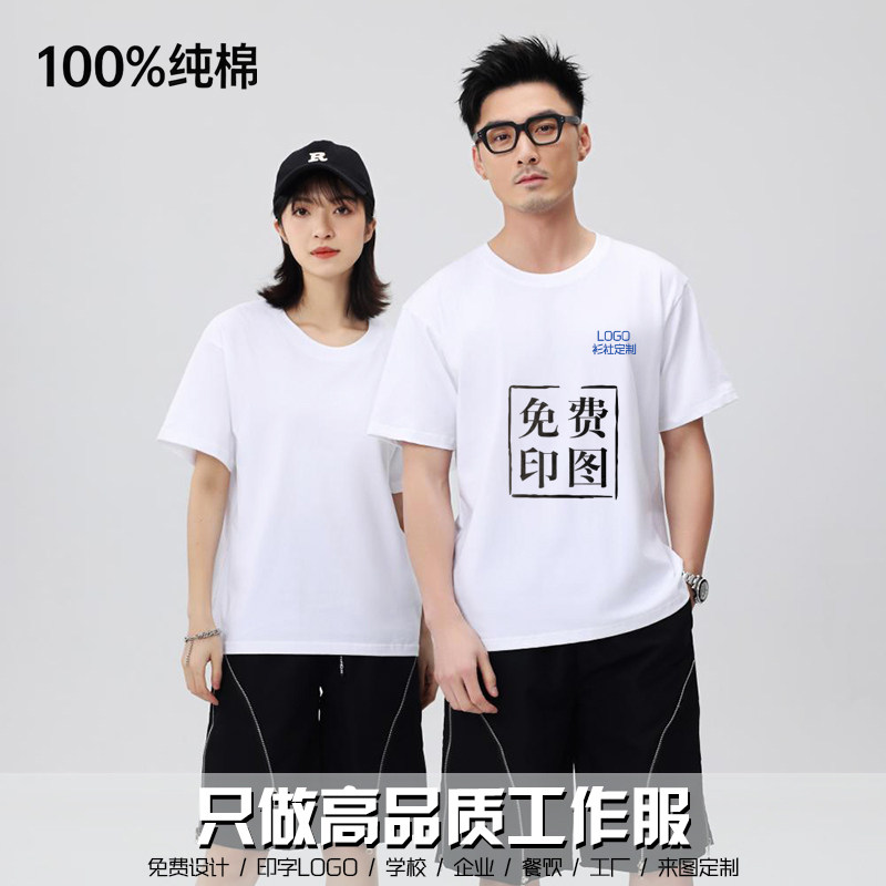 260g纯棉短袖t恤定制印字logo情侣装工作服班服diy企业团体文化衫
