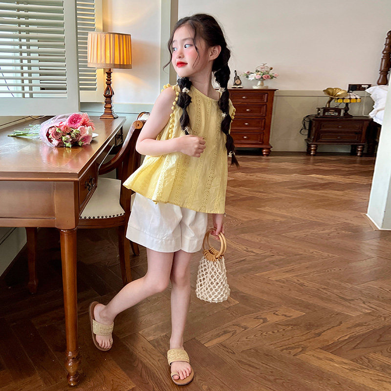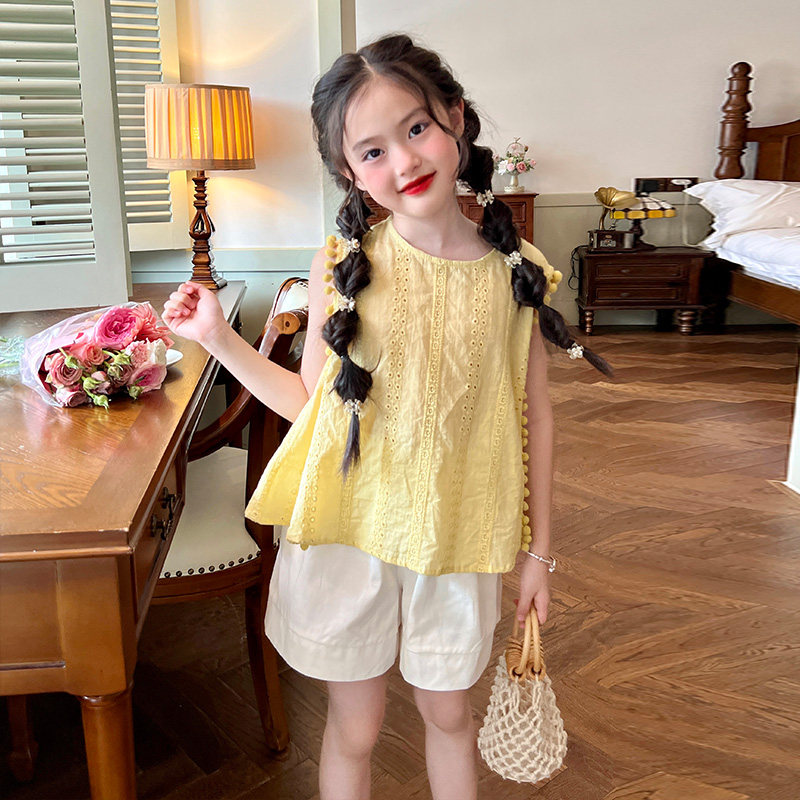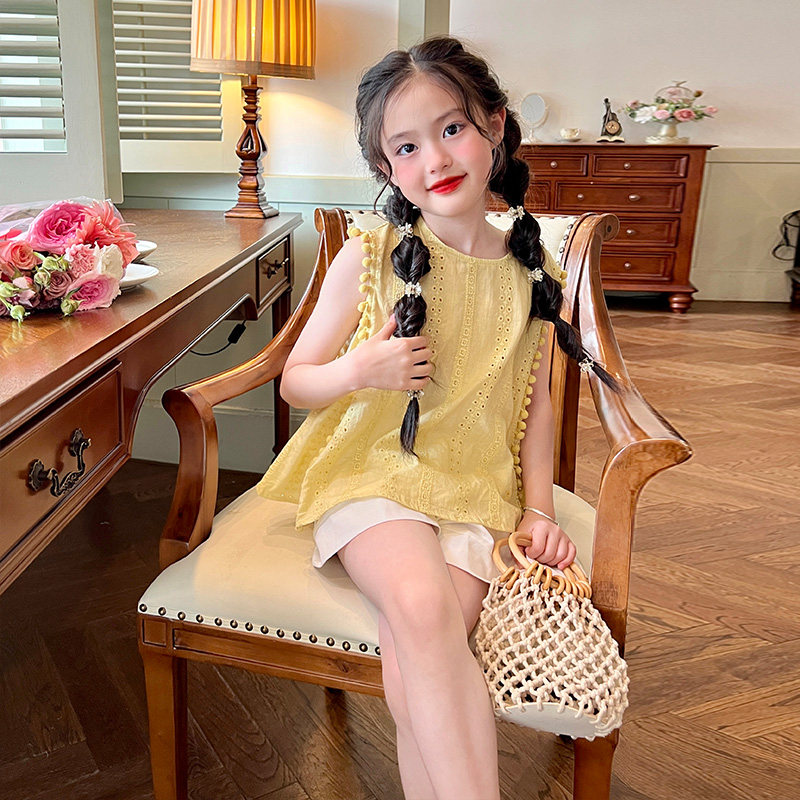 栀了成长记童装女童韩版纯棉无袖背心夏季新款儿童女宝宝薄款上衣