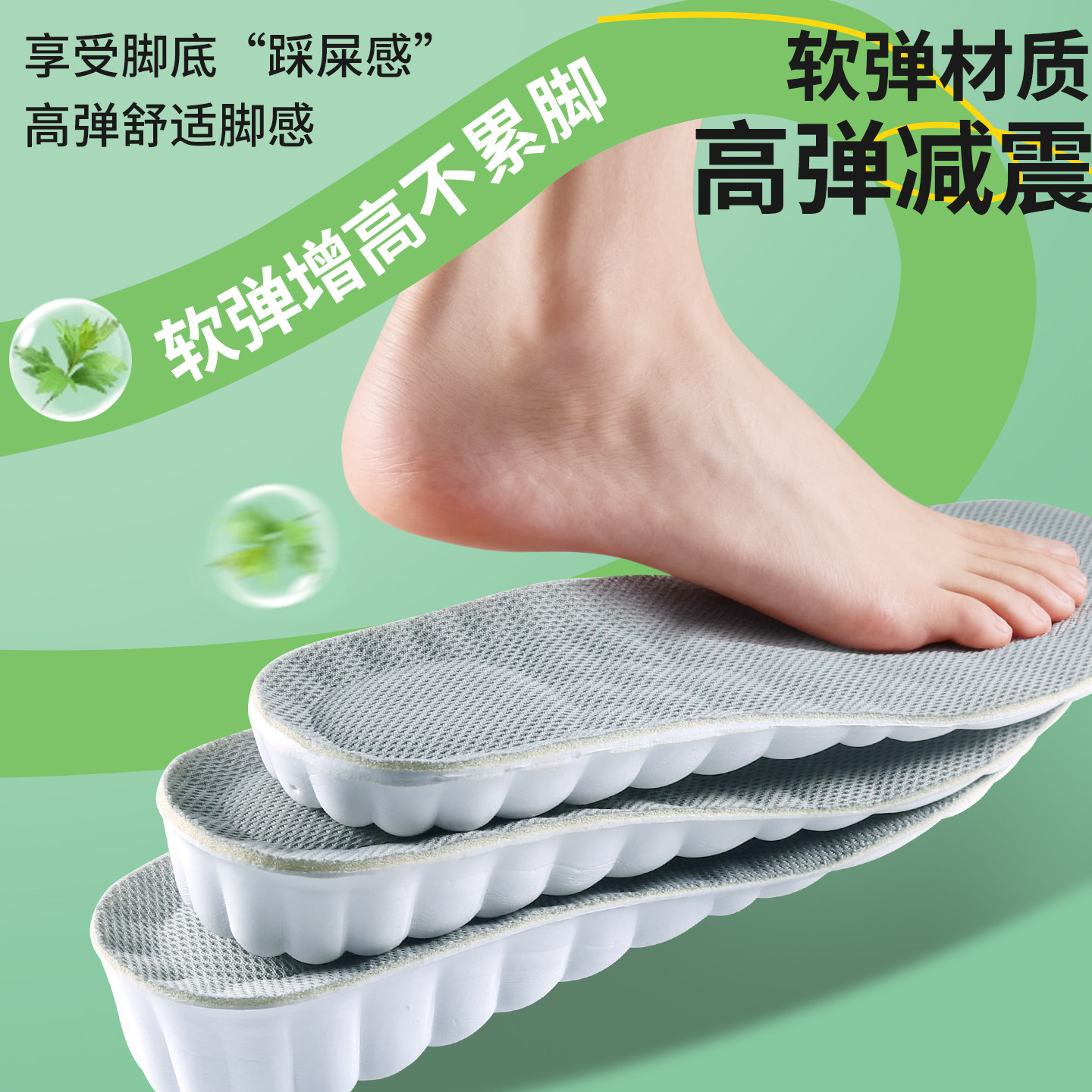 除臭增高鞋垫男款不累脚隐形内增高吸汗女士运动气垫减震云科技