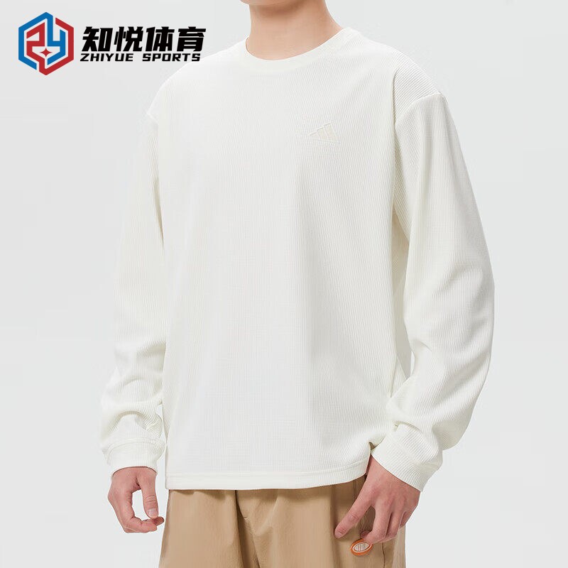 Adidas阿迪达斯男士宽松圆领长袖卫衣白色休闲百搭基础款KR2541