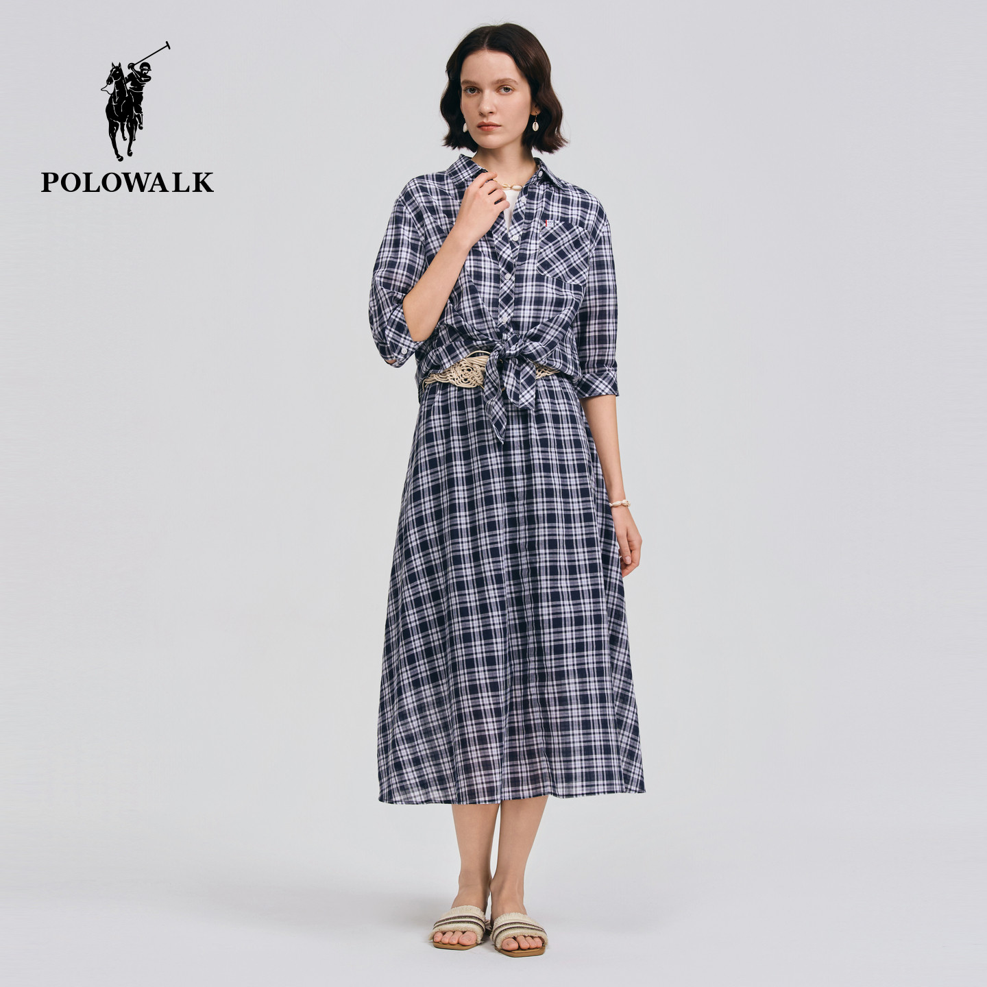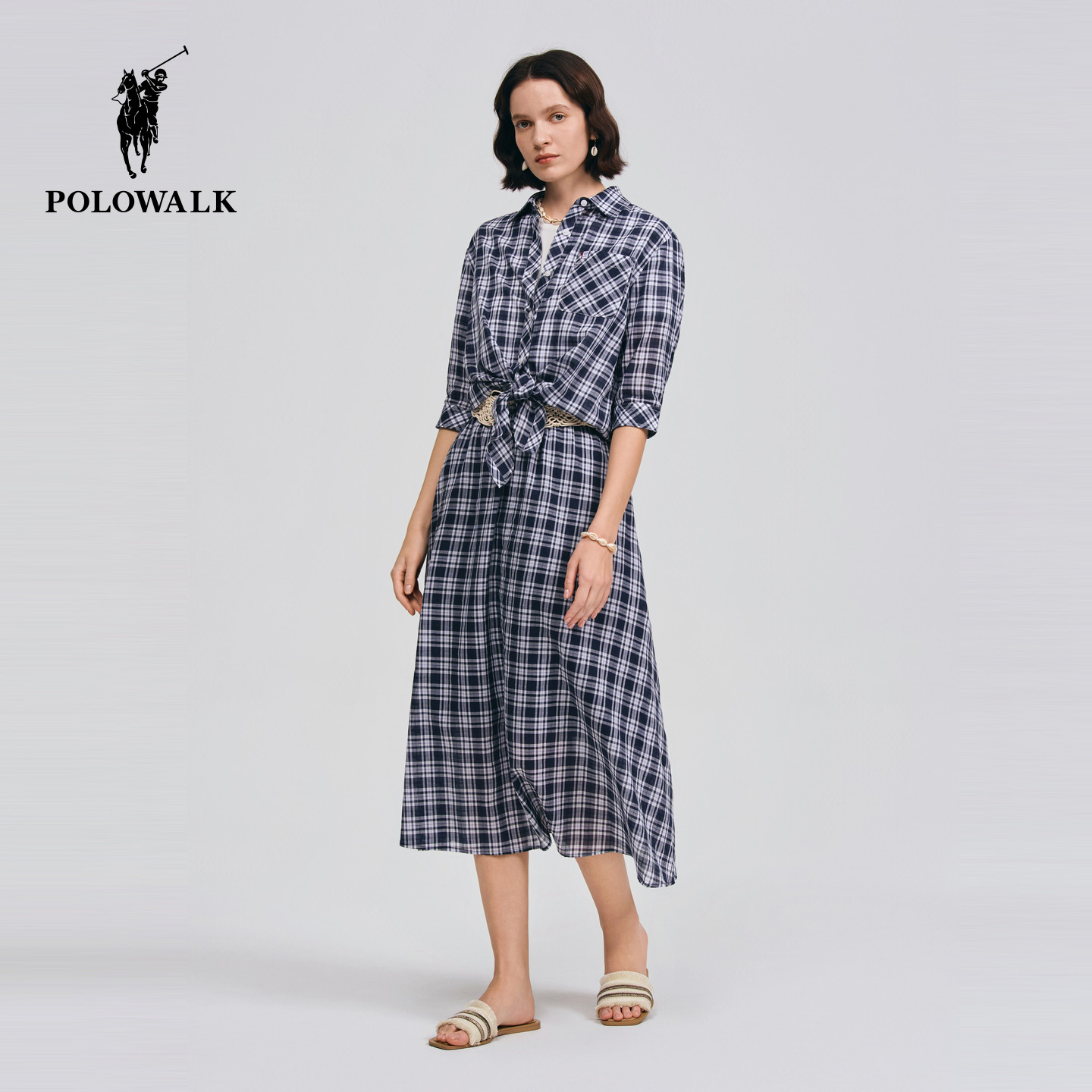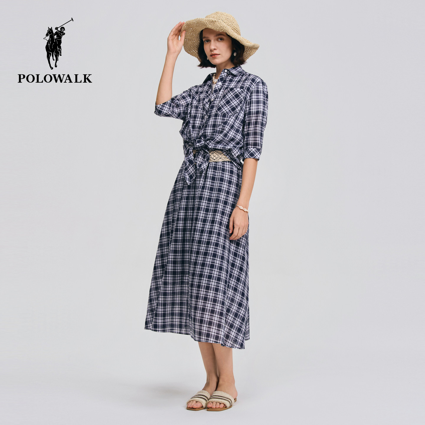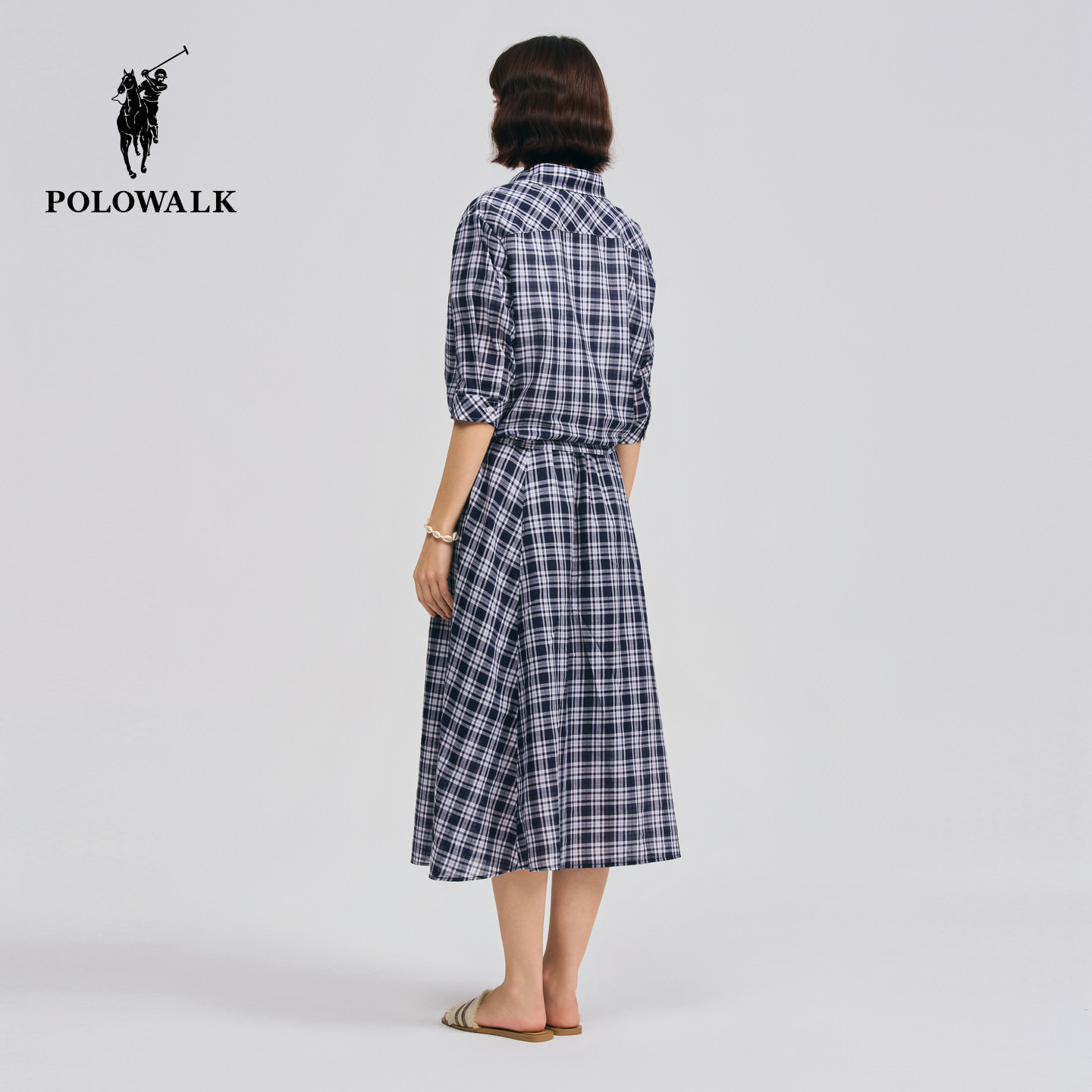 【套装】POLOWALK女装衬衫2026夏季新款女士纯棉格子上衣休闲半裙