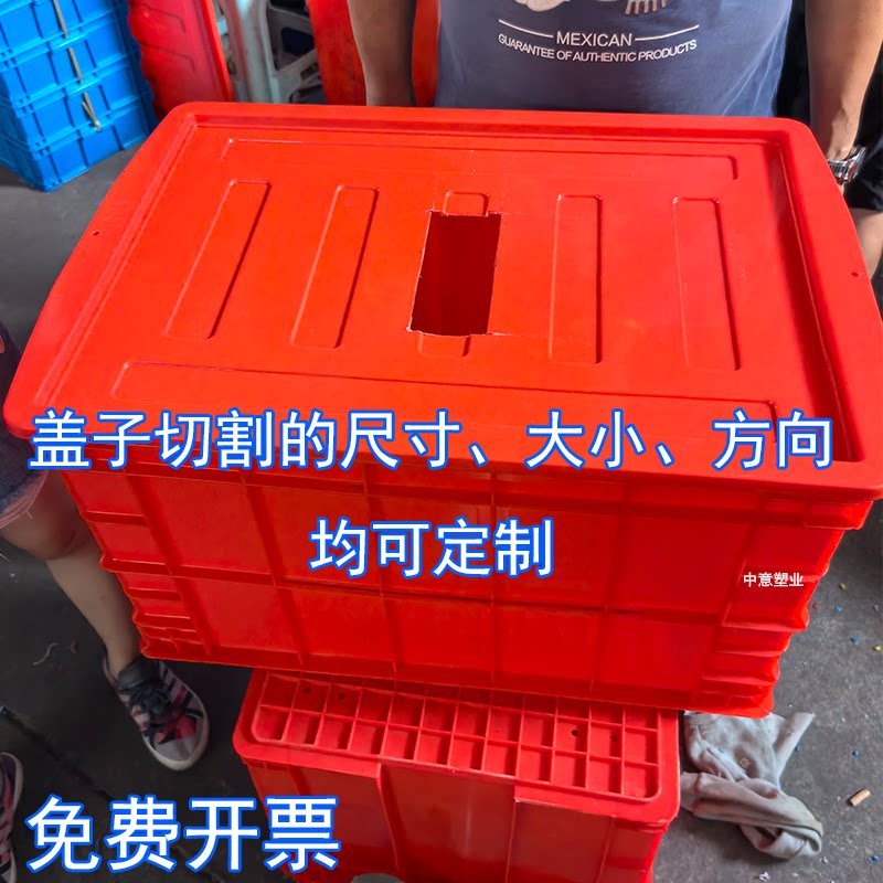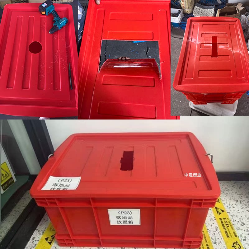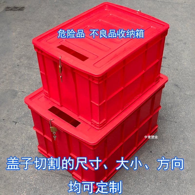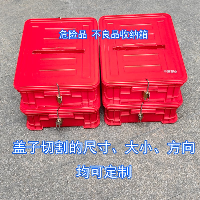 红色带锁带投料口不良品塑料盒周转箱危险品收纳箱盖子可开口箱