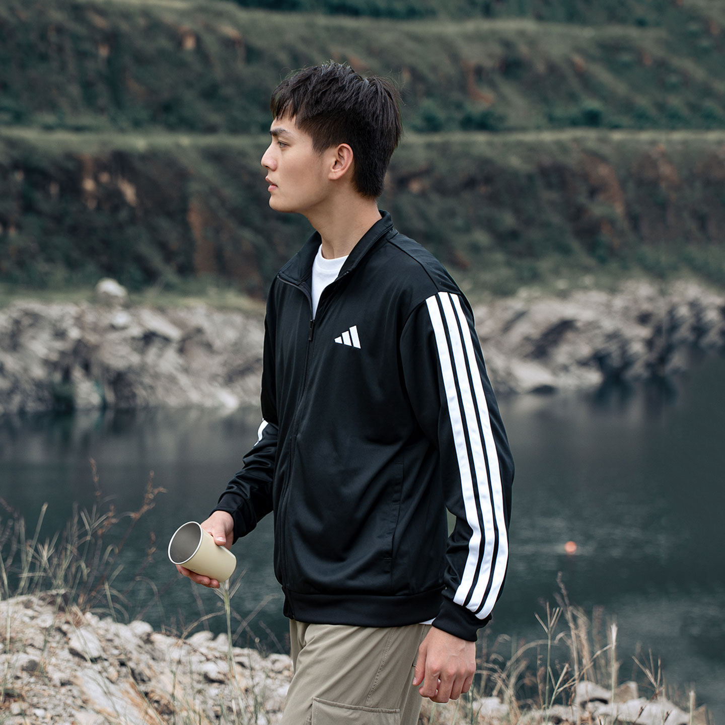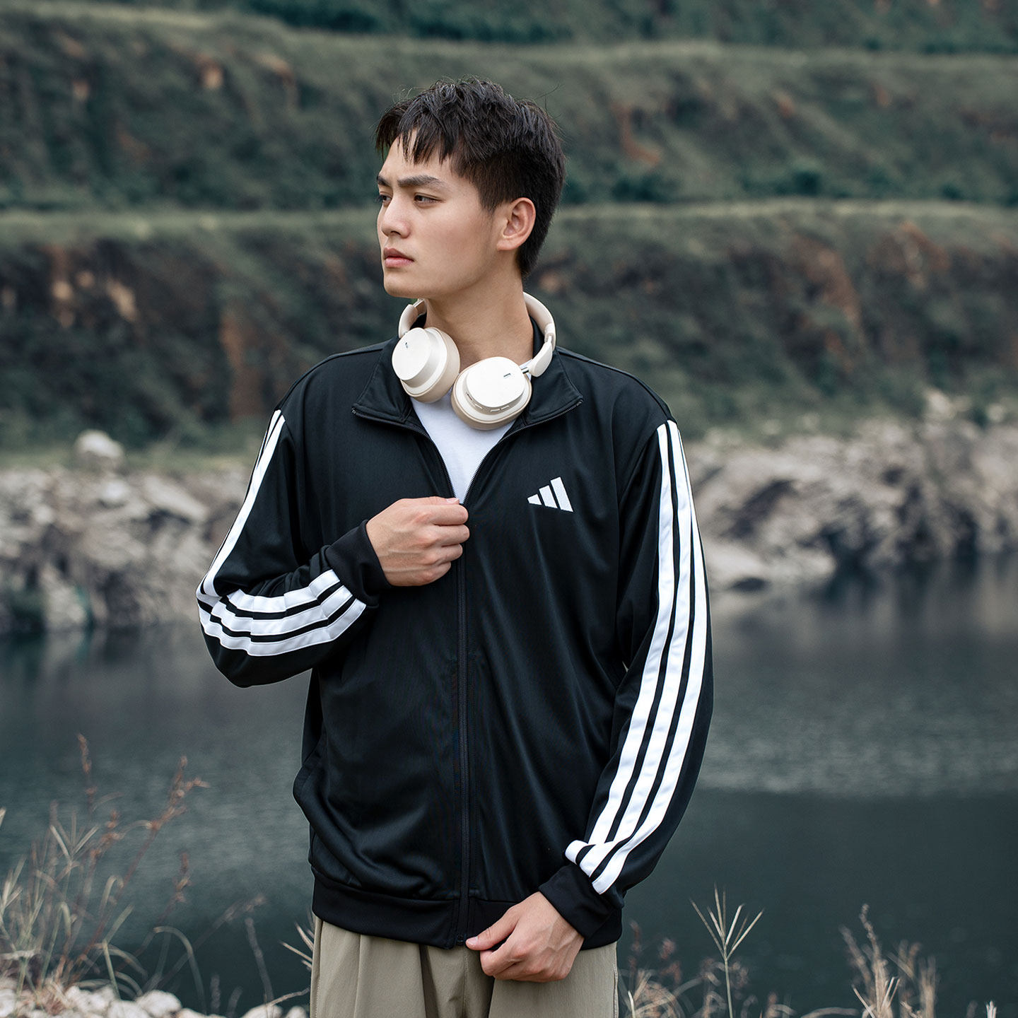 Adidas阿迪达斯官方正品男士夹克长裤运动套装三条纹黑色外套长裤