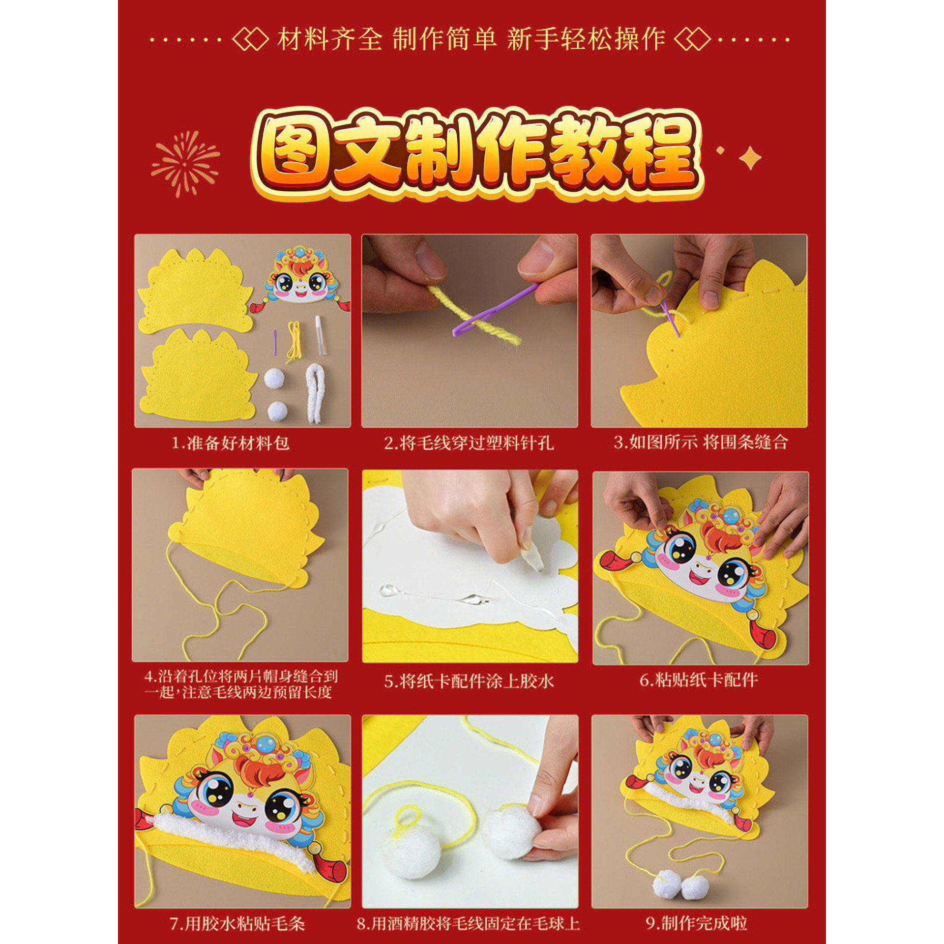 311线报网描述:2026元宵节马年吉祥物帽子手工diy材料包儿