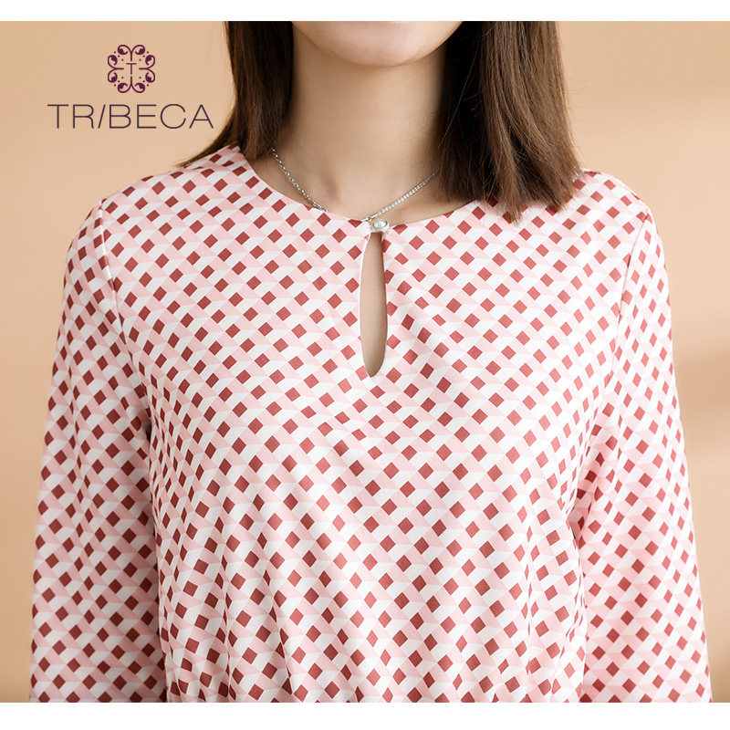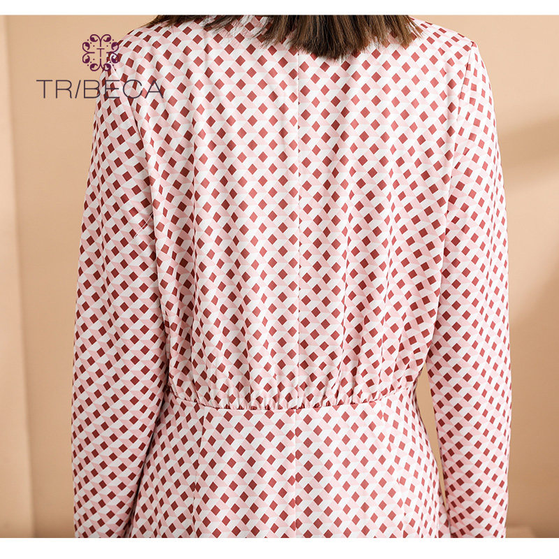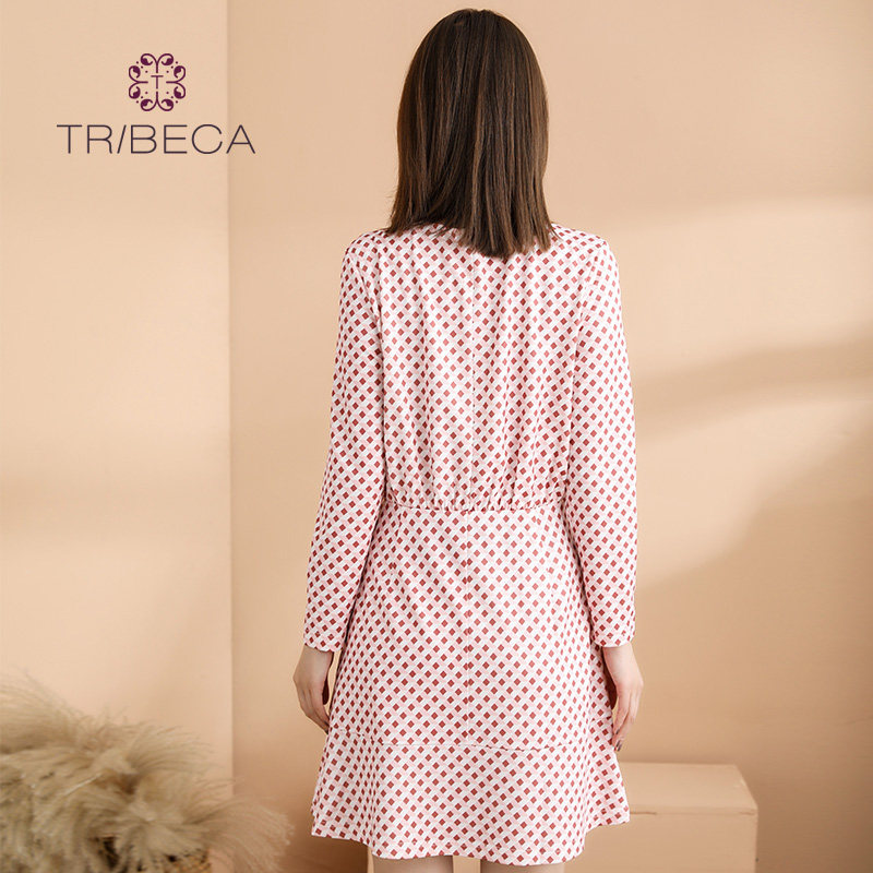 TRIBECA翠贝卡商场同款女拼色高腰打底连衣裙长袖修身显瘦裙子