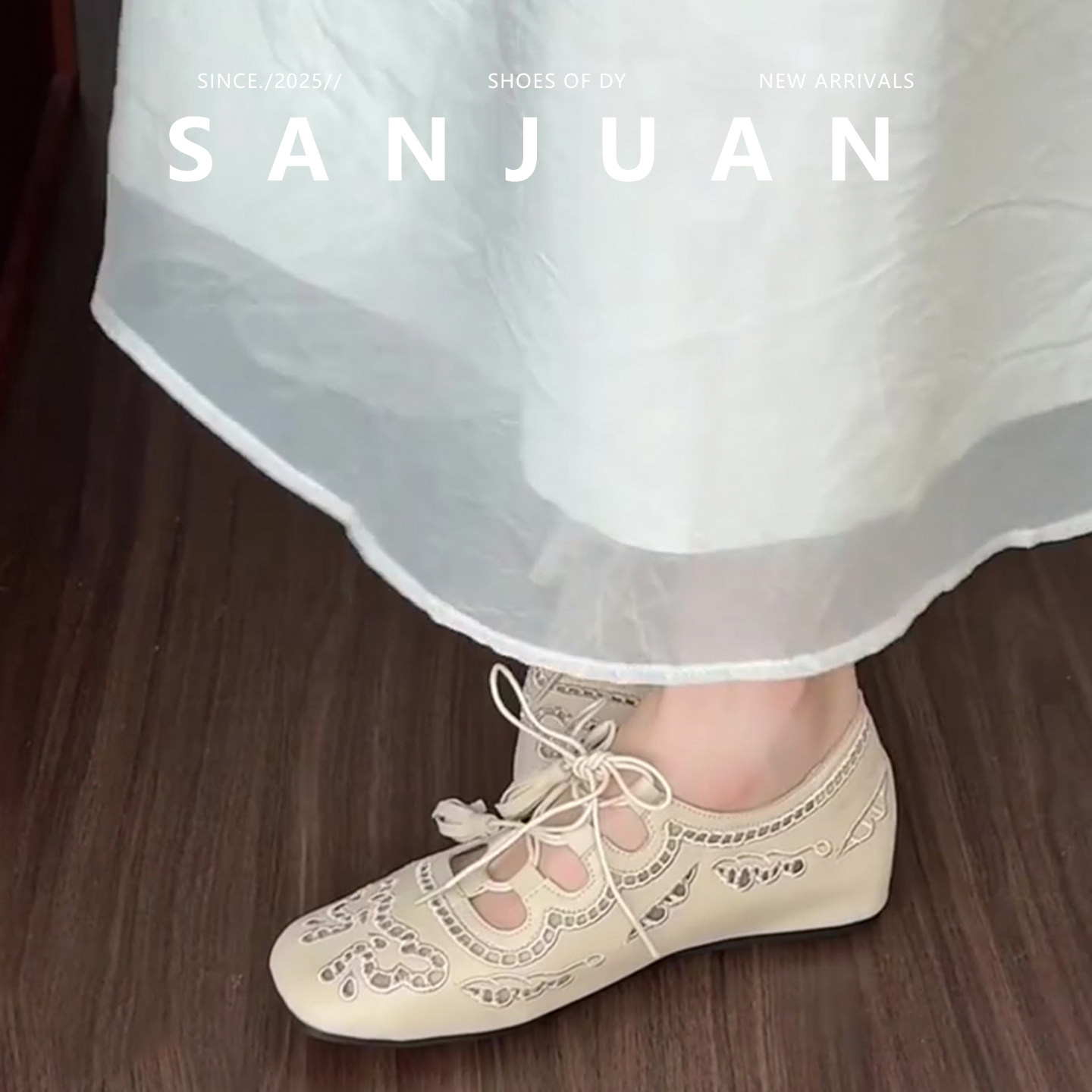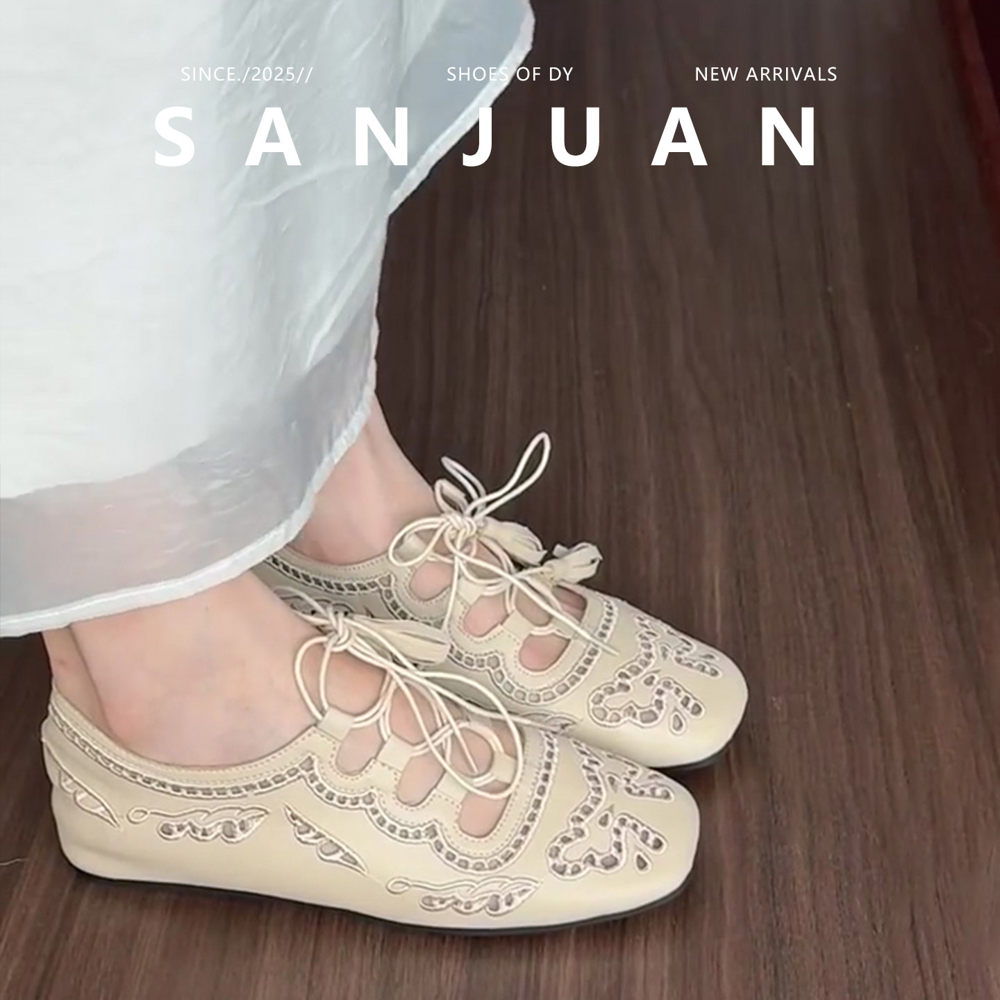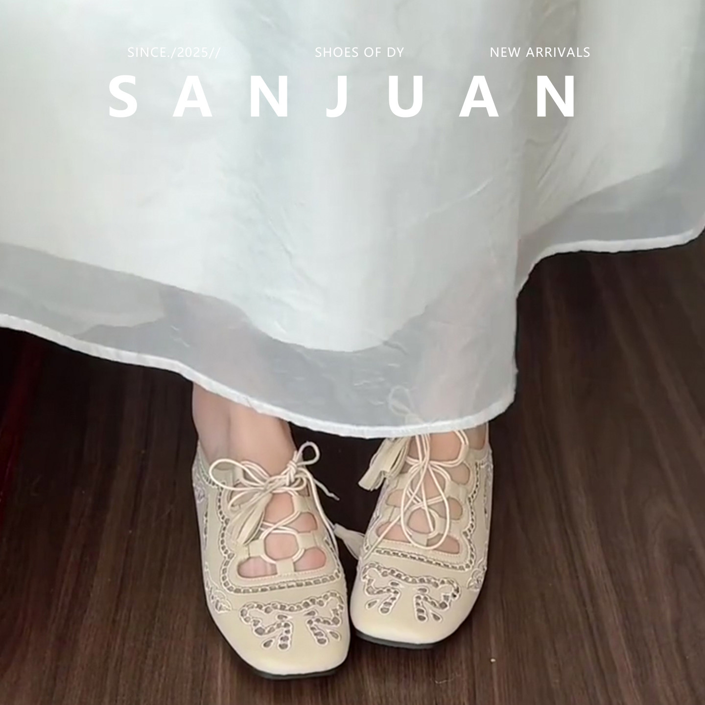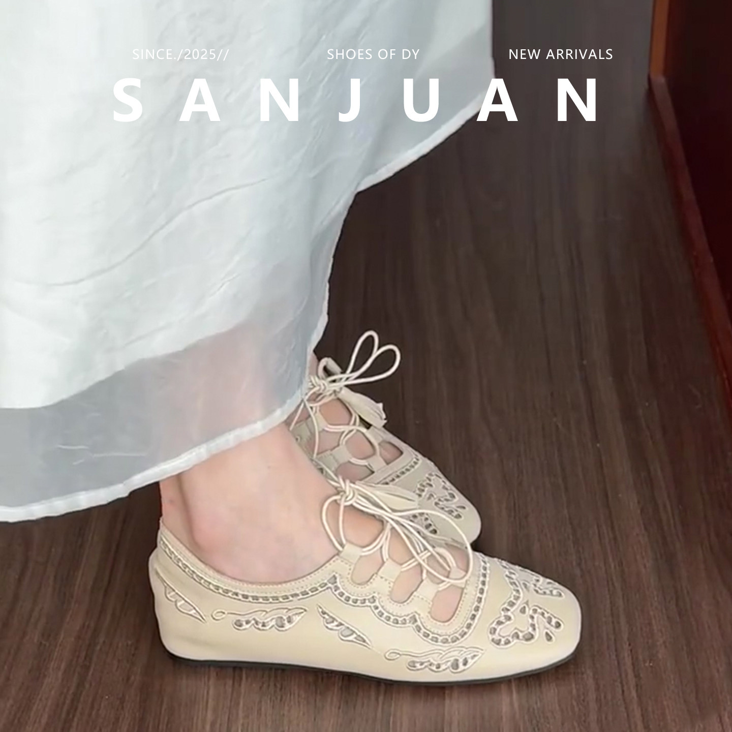 羊皮版sanjuan三卷镂空内增高单鞋方头米白凉鞋2026春夏法式女鞋