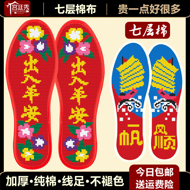 宫廷秀十字绣鞋垫新款自己绣2025半成品手工网红全纯棉女底品牌