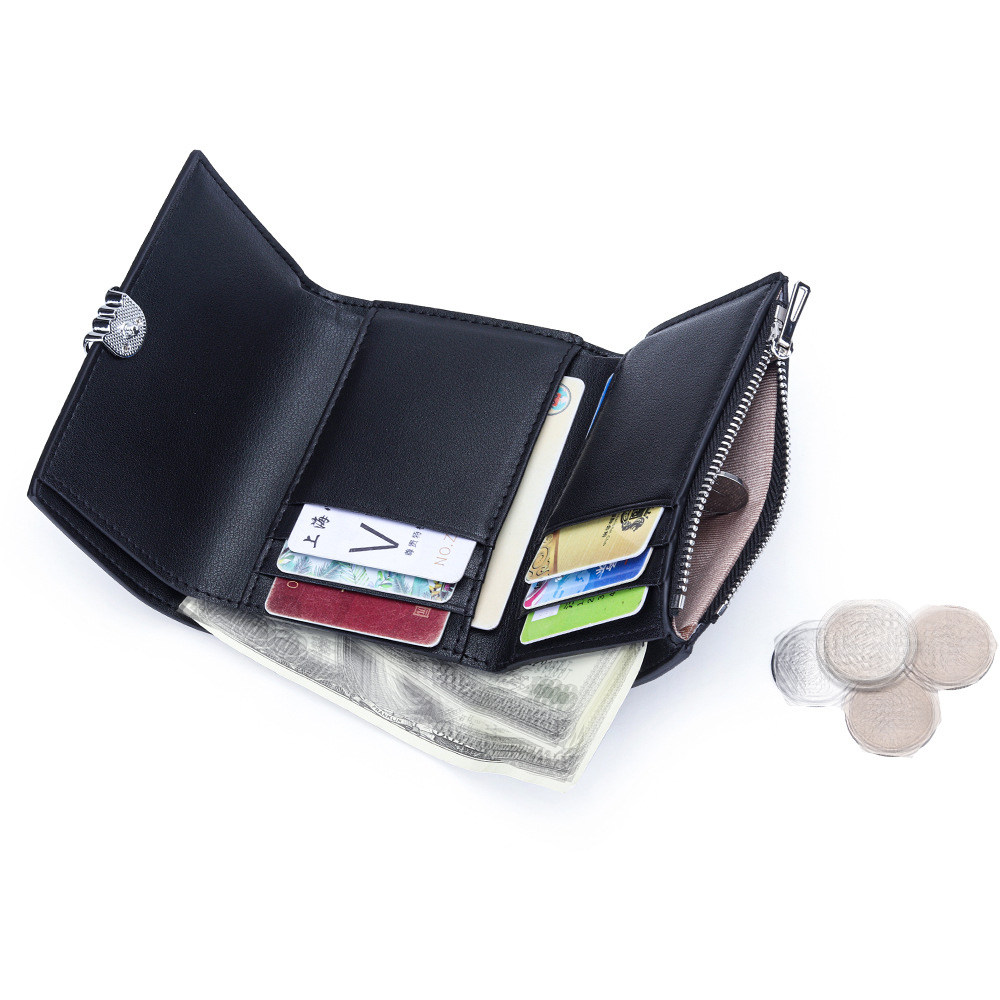 英伦风真皮钱包女短款新款大容量小钱包百搭轻便三折小钱夹零钱包