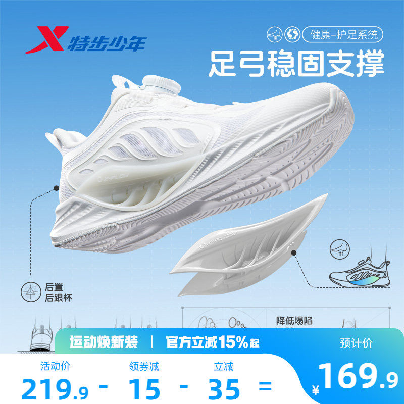 【氢风8.0护足跑鞋】特步童鞋男童运动鞋白色儿童跑步鞋男孩鞋子