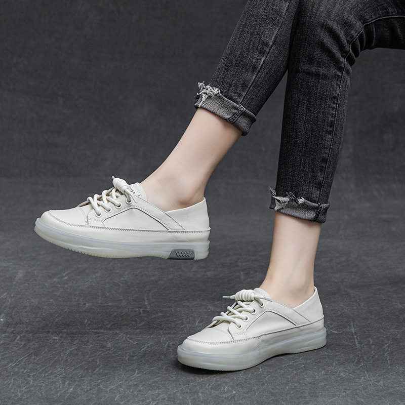 春秋女鞋低跟真皮透气轻便小白鞋软底软面不磨脚运动鞋防滑不闷脚