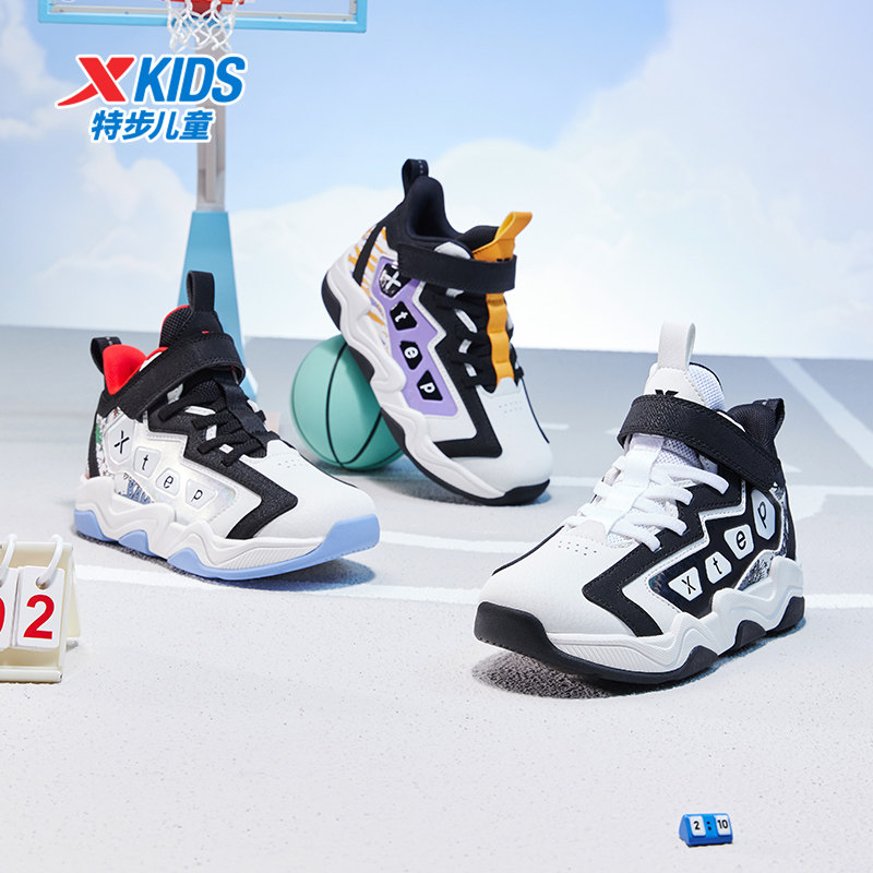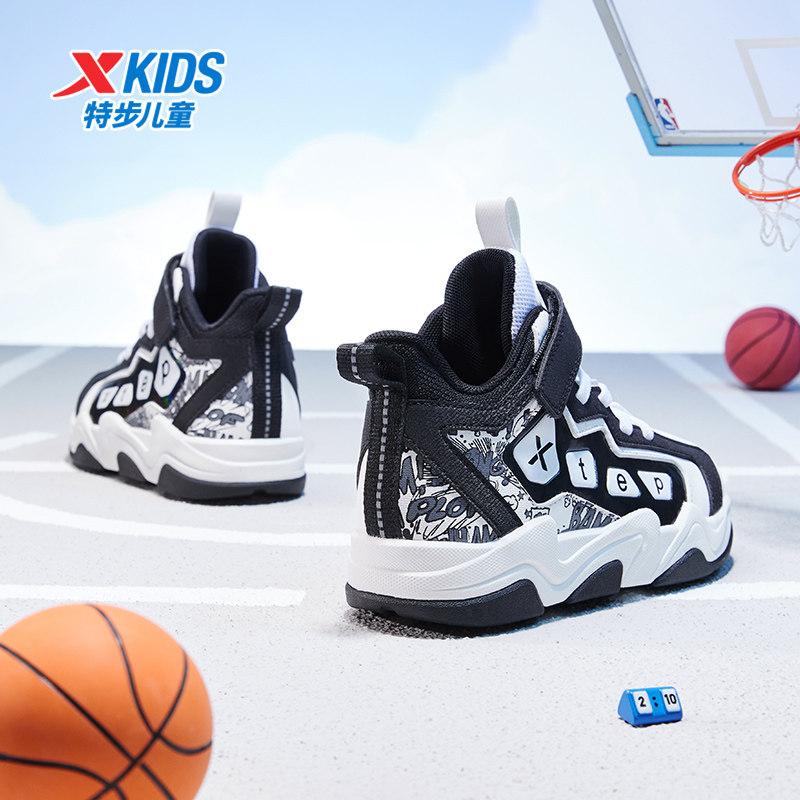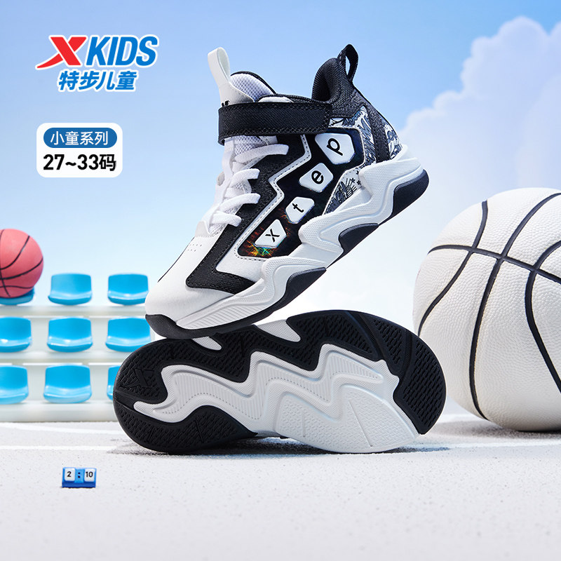 特步童鞋秋季新款幼小童时尚百搭高帮篮球鞋儿童运动减震缓震球鞋