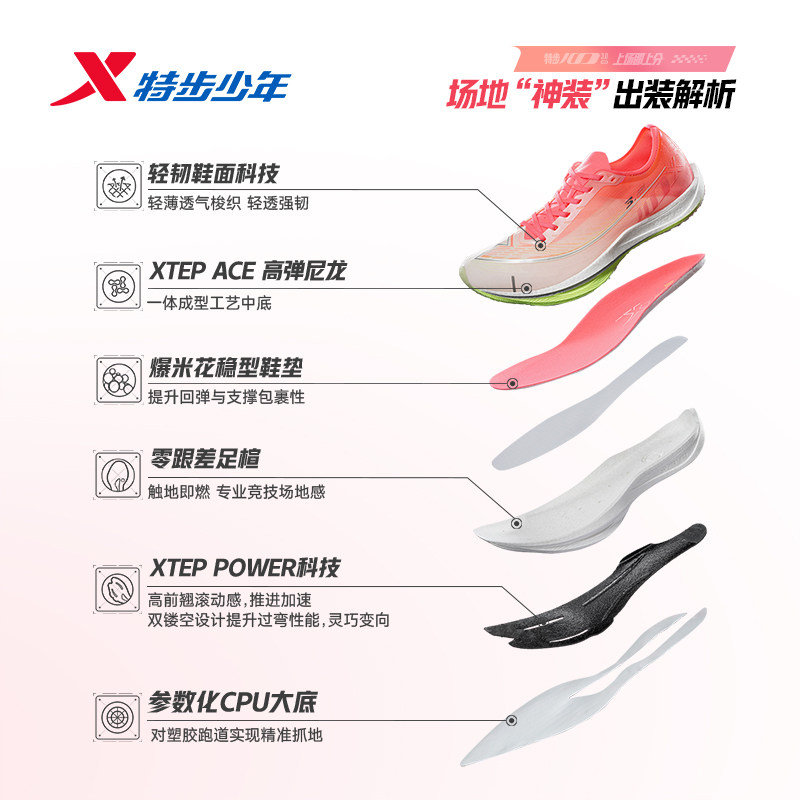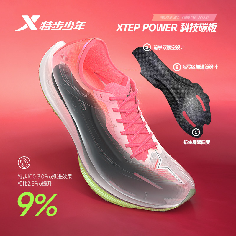 特步100 3.0Pro|薄底一体成型碳板跑鞋体考体测竞速训练青少年鞋