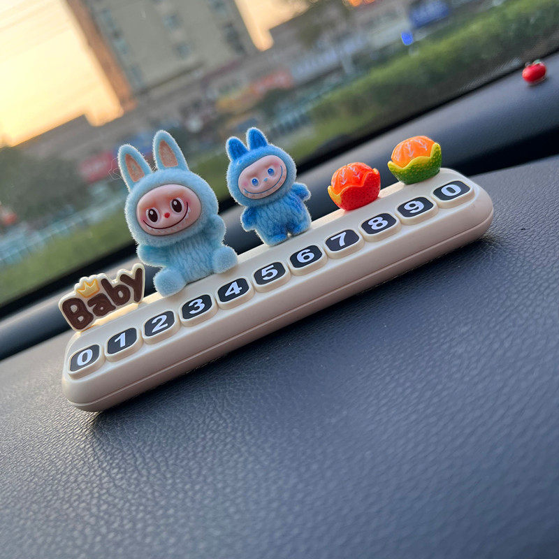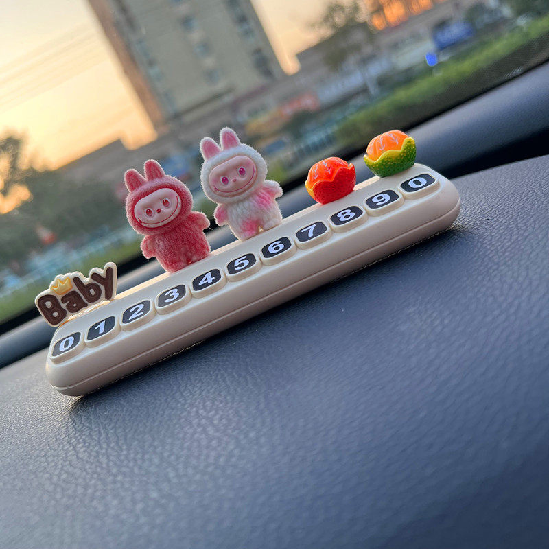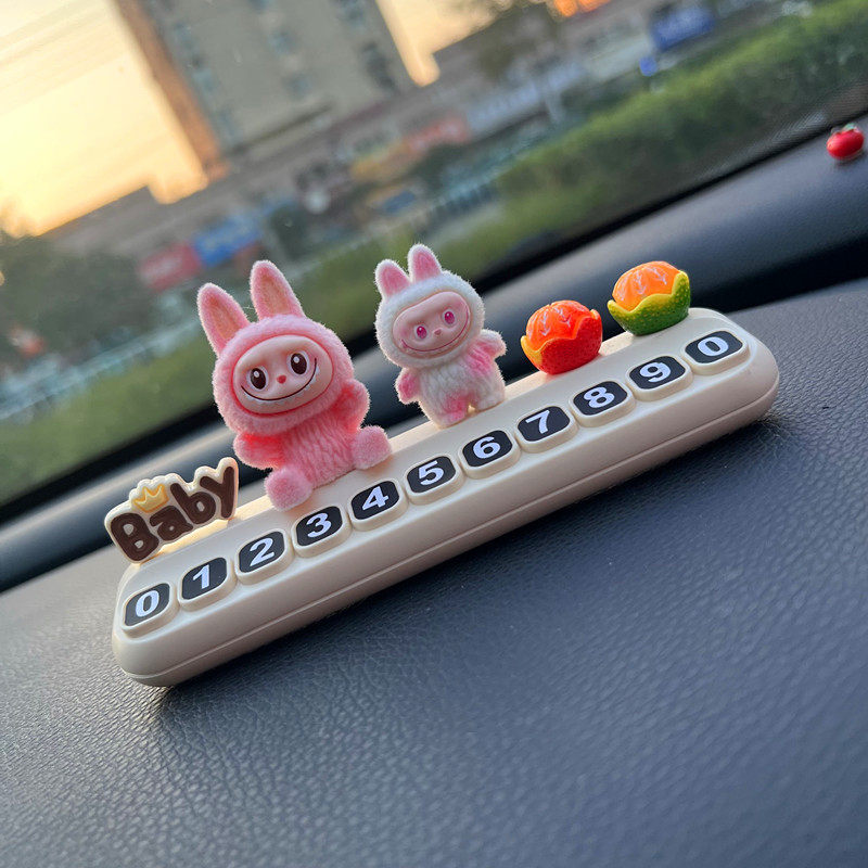 labu可爱摆件创意拉布临时停车号码牌布布车载中控台汽车挪车电话
