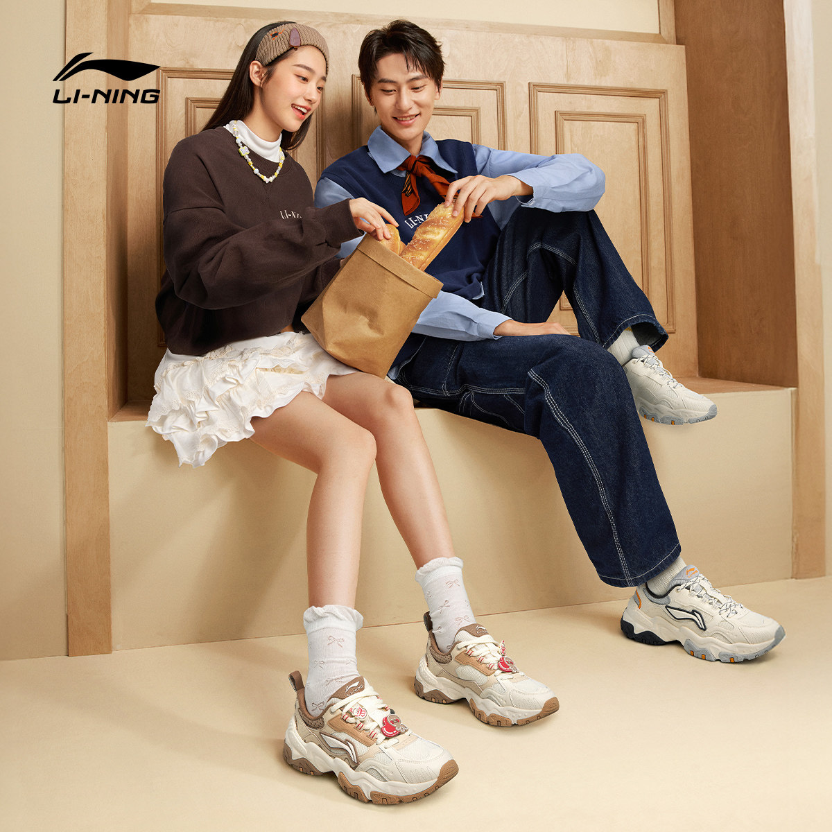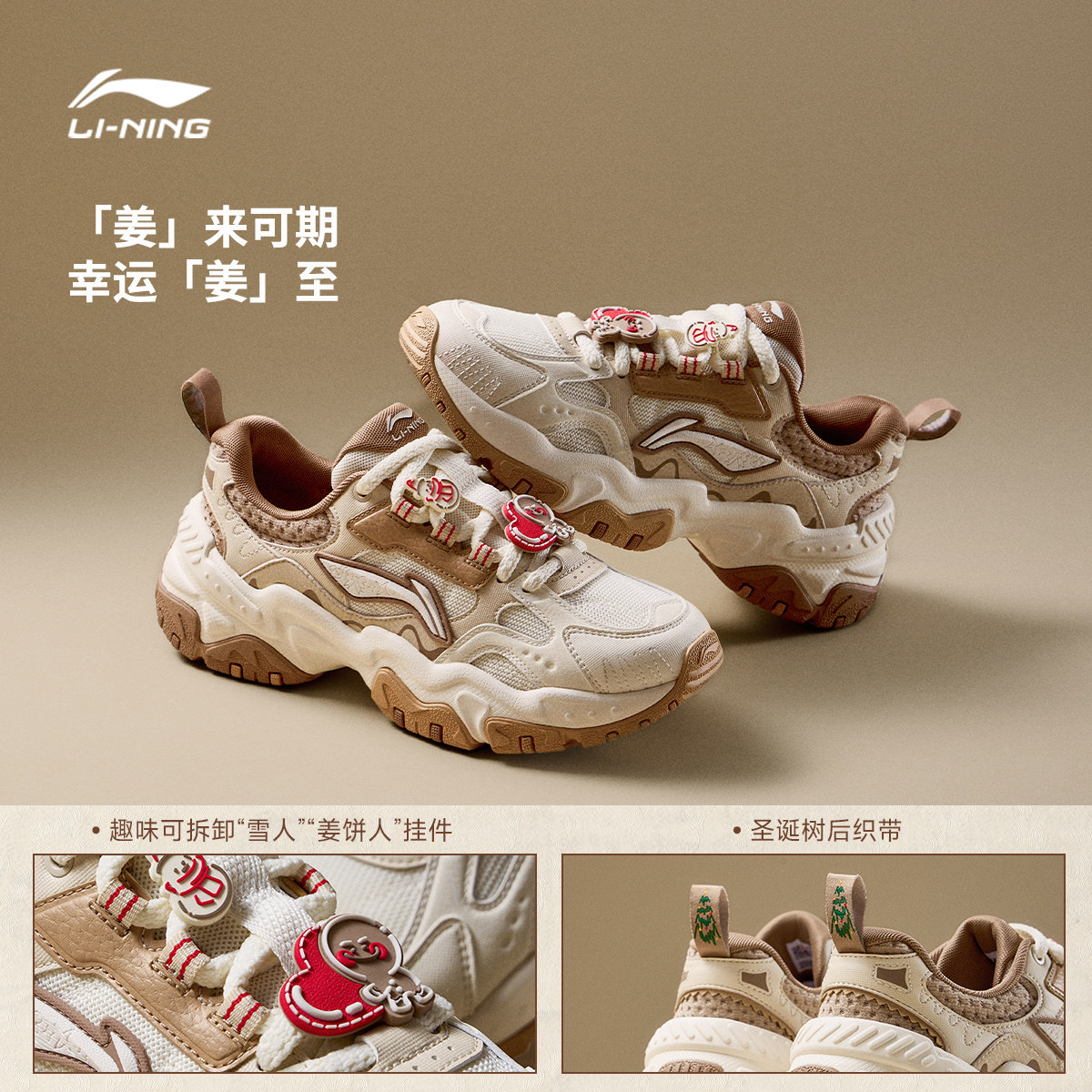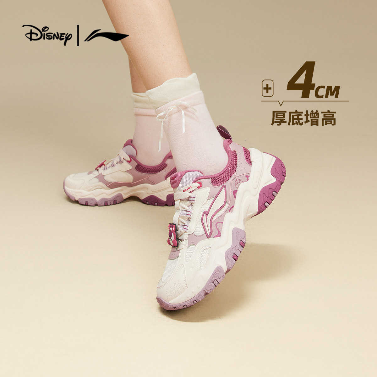 李宁红糖迪士尼草莓熊联名| 休闲鞋女鞋春季增高复古老爹鞋运动鞋