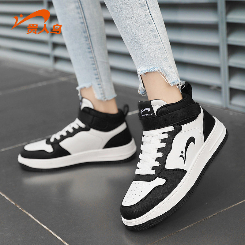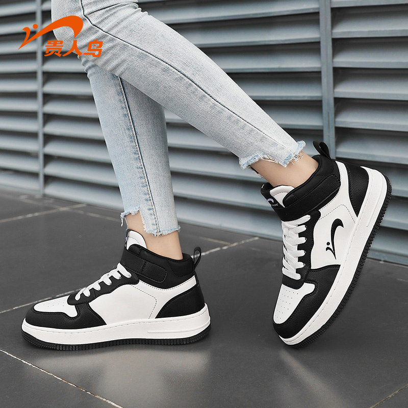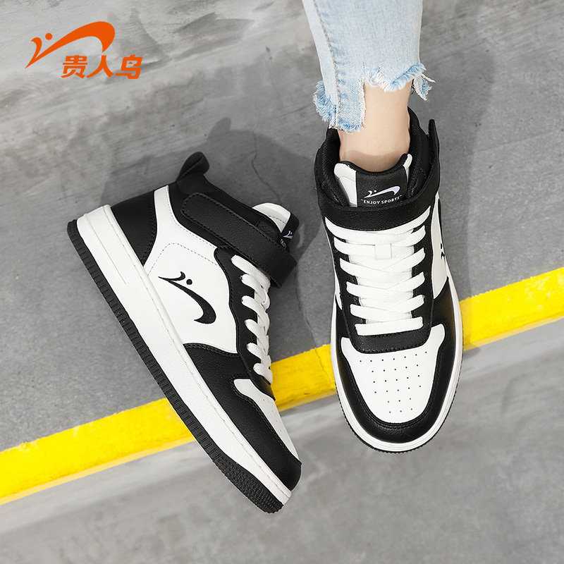 贵人鸟高帮女鞋春季2026新款空军一号运动鞋子女黑白休闲板鞋女款