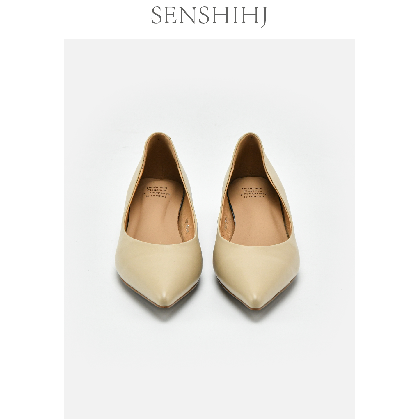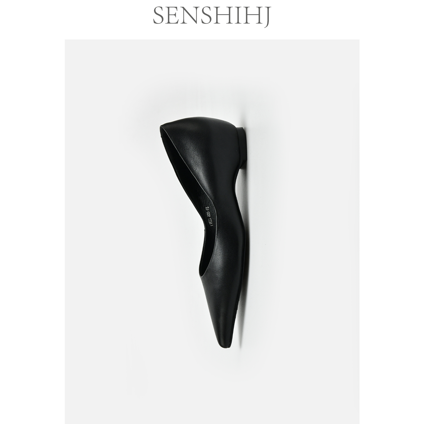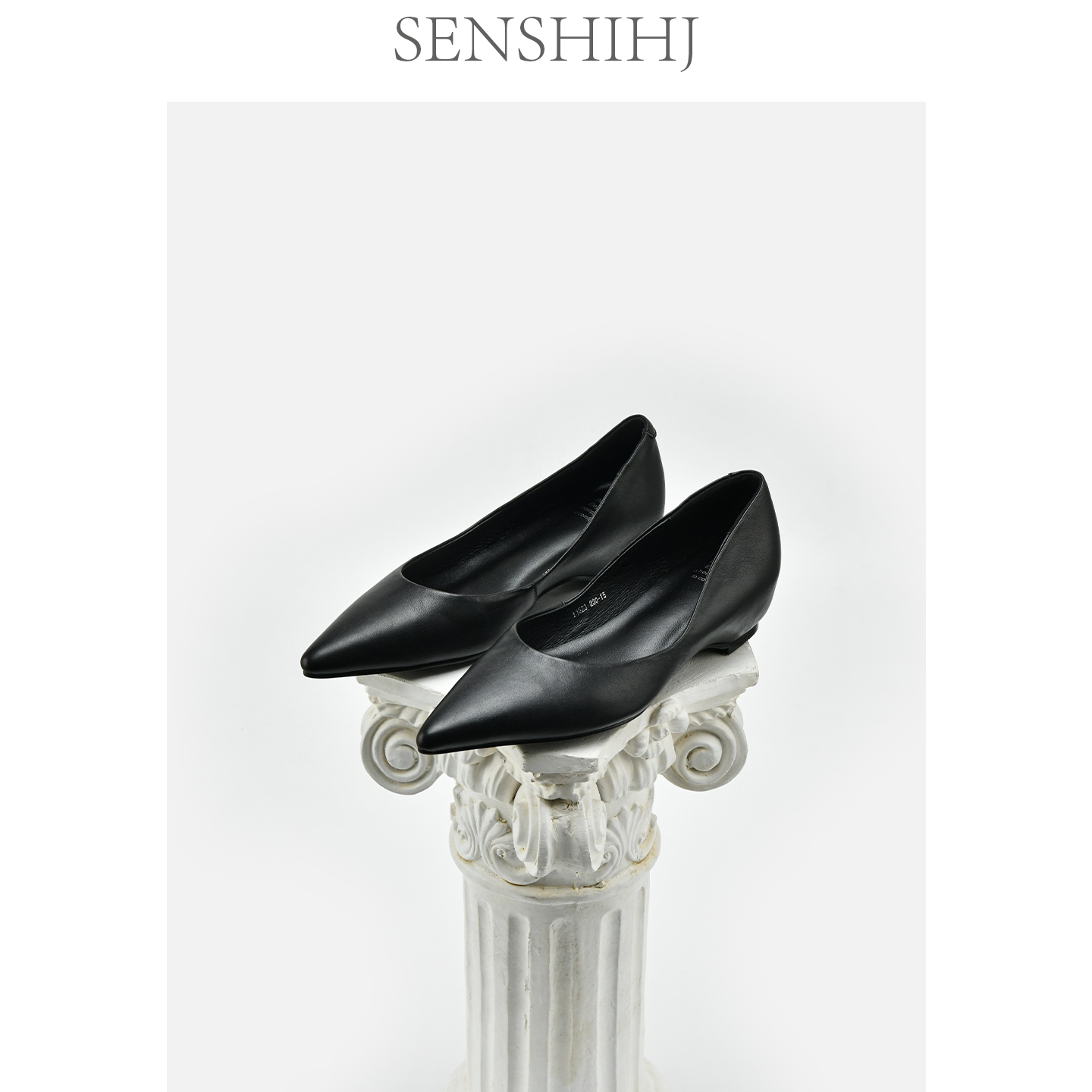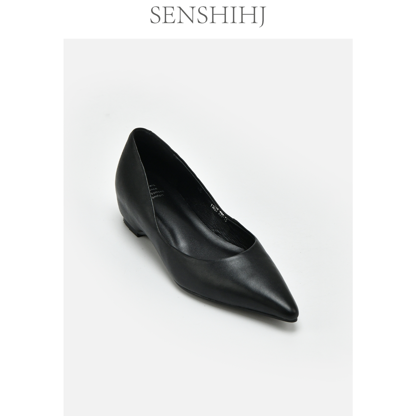 SENSHIHJ/森诗和匠头层牛皮浅口尖头平底单鞋女26春夏内增高女鞋