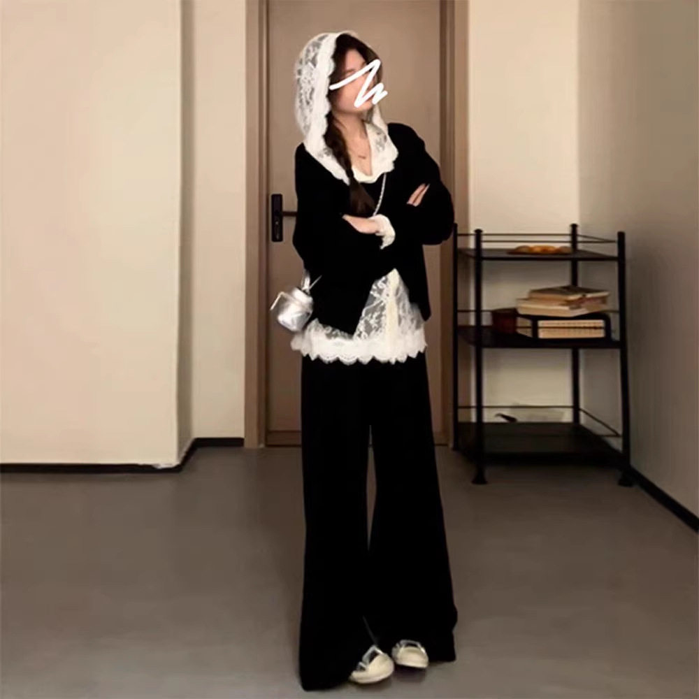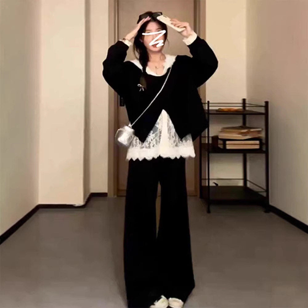 黑色小个子女装早春季2026新款超火三件套休闲韩系感穿搭套装