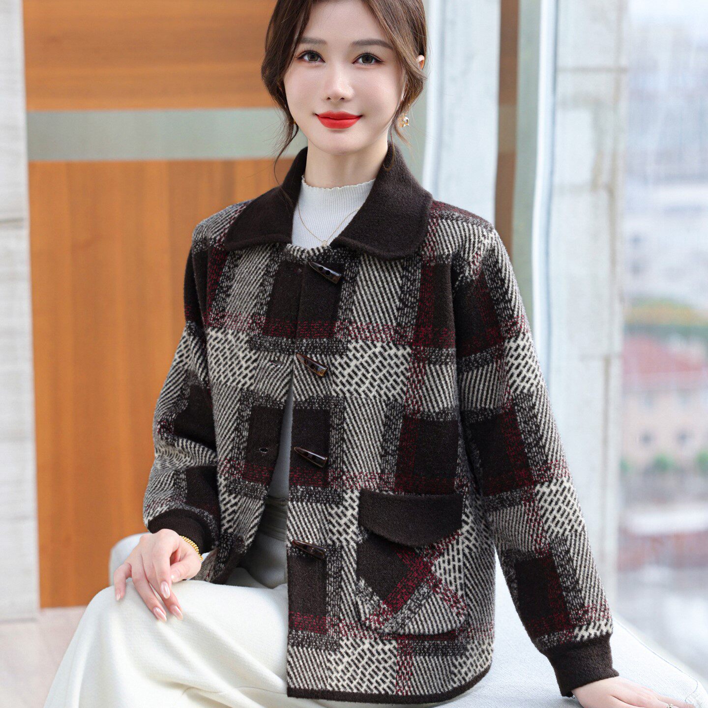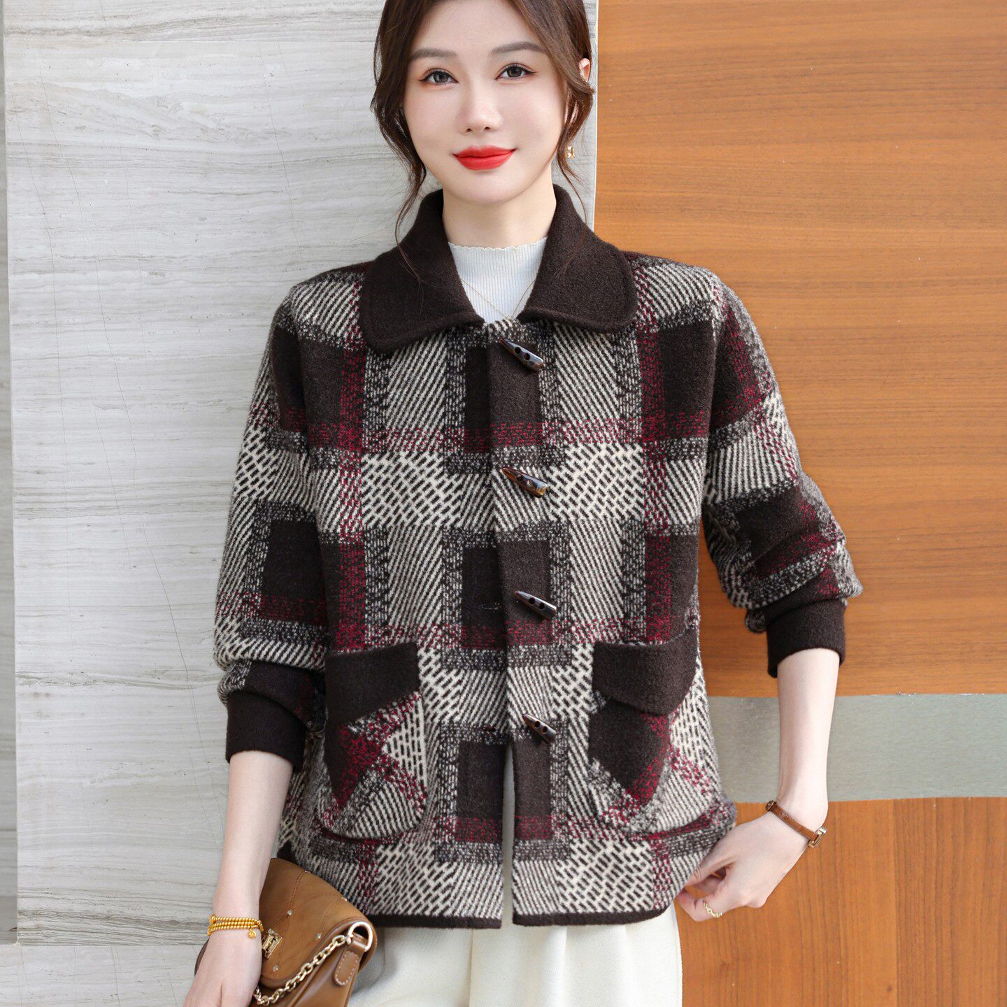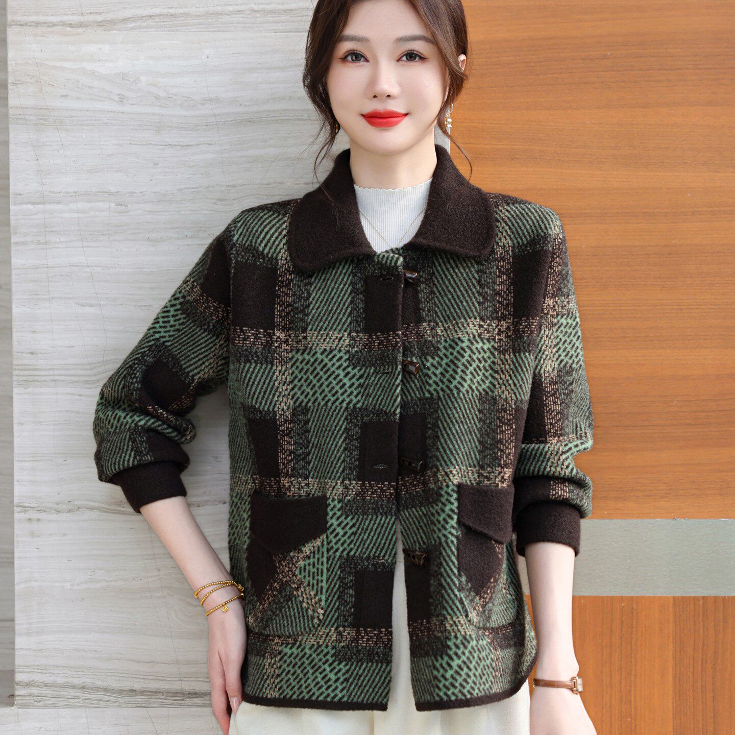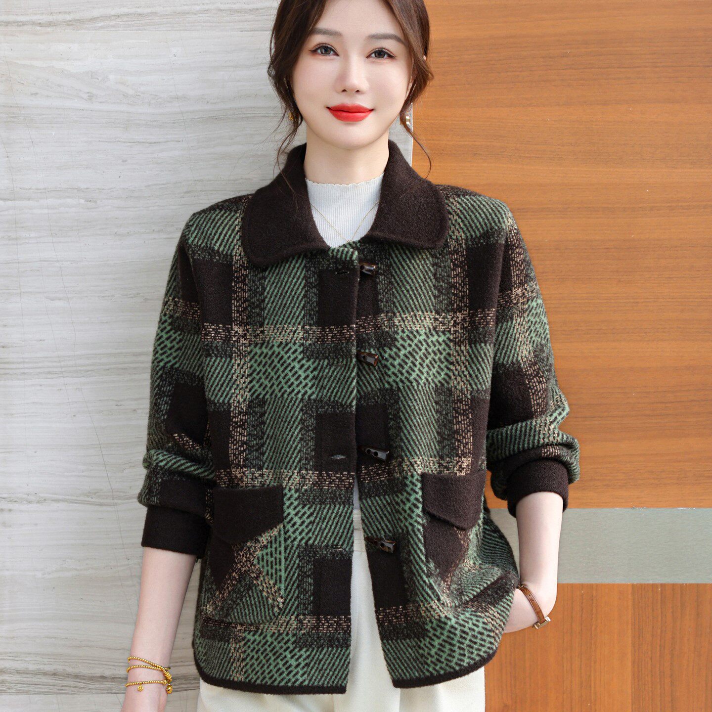 妈妈春秋装短款加厚毛呢外套气质中年妇女双面呢高贵上衣洋气开衫