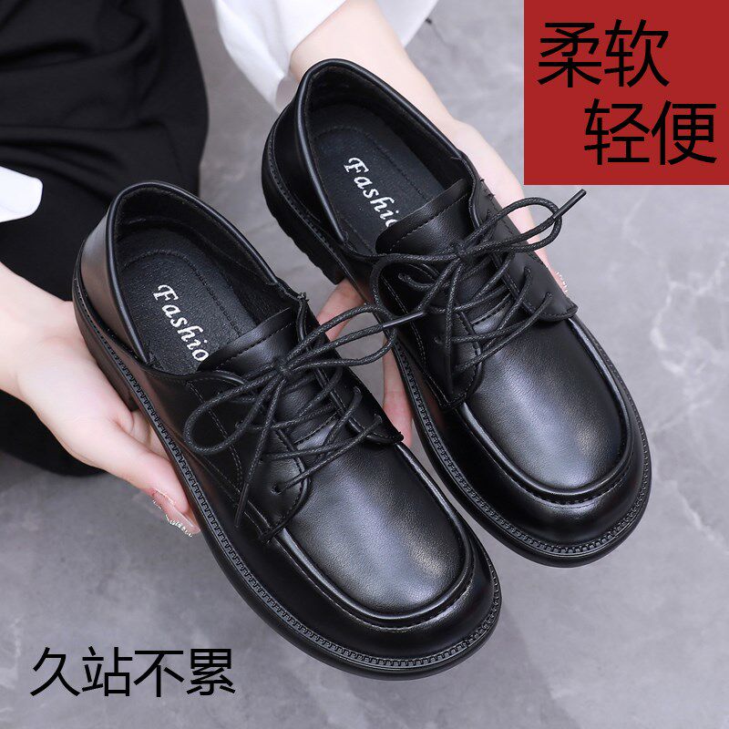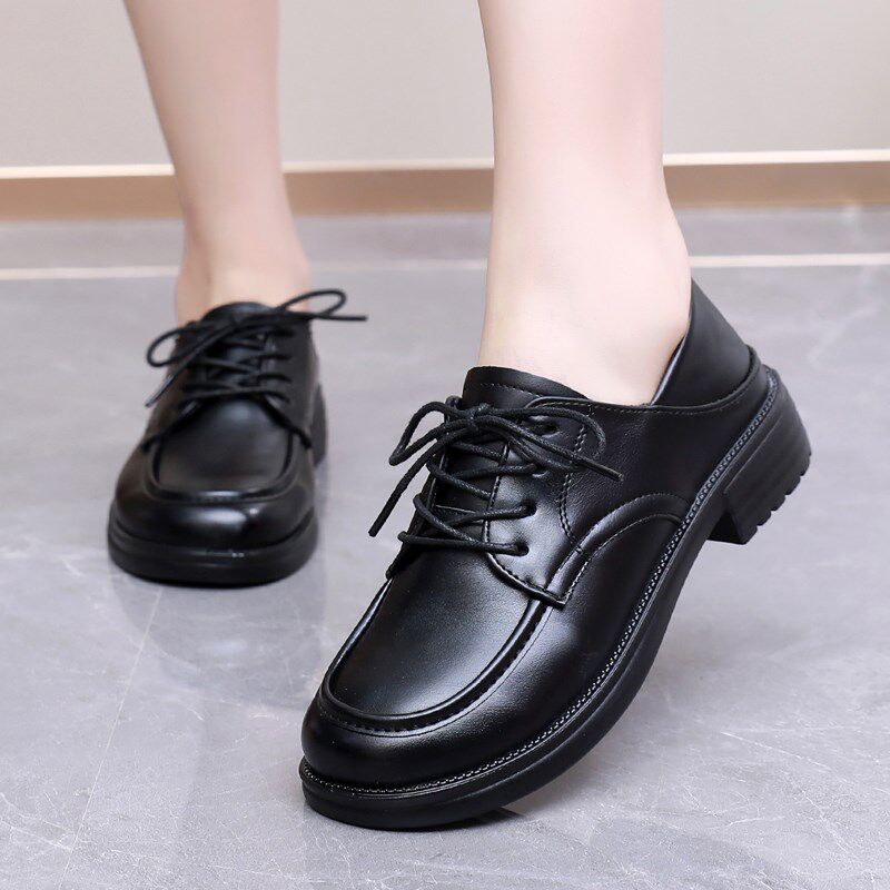 新品厨房专用防滑鞋女款黑色运动鞋皮面防油N防水久站不累脚软底