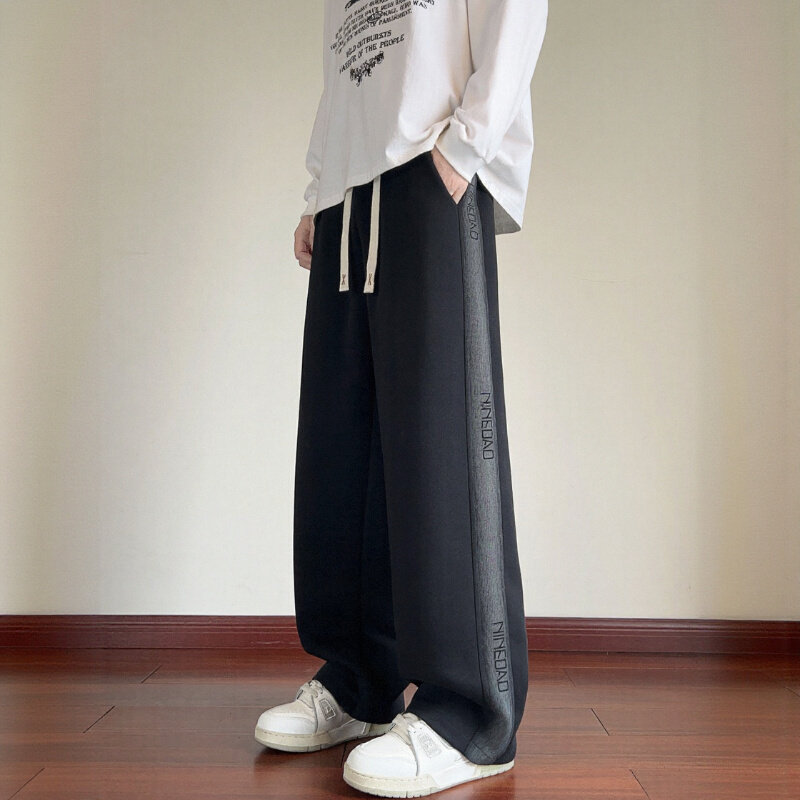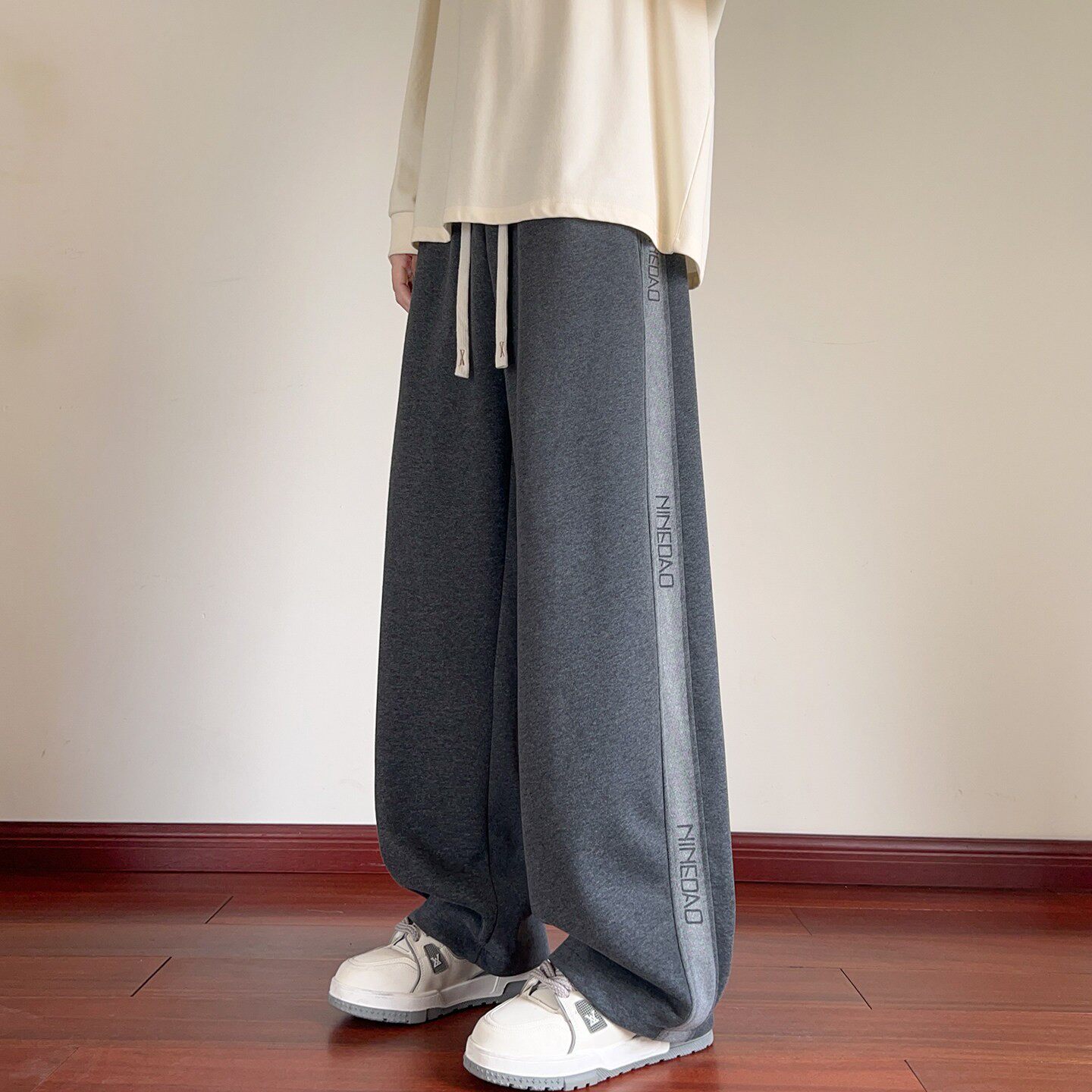 长裤子男生秋冬季新款中学生青少年加绒加厚直筒阔腿休闲卫裤男装
