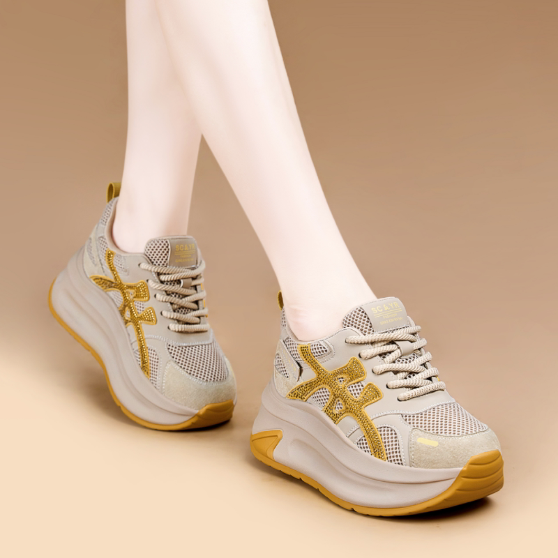 8CM隐形内增高女鞋小个子网红爆款圆头阿甘鞋真皮运动休闲小白鞋
