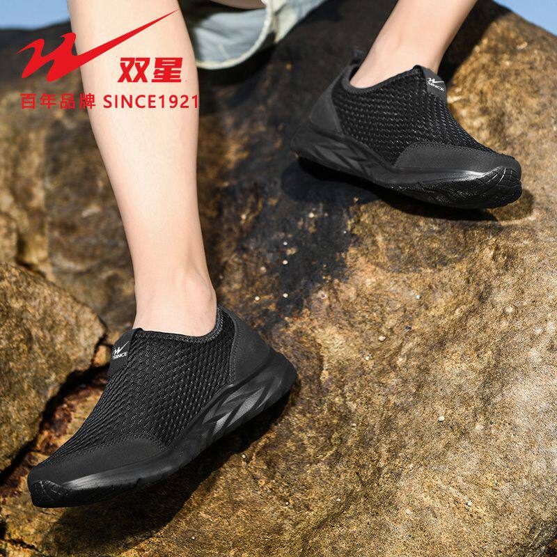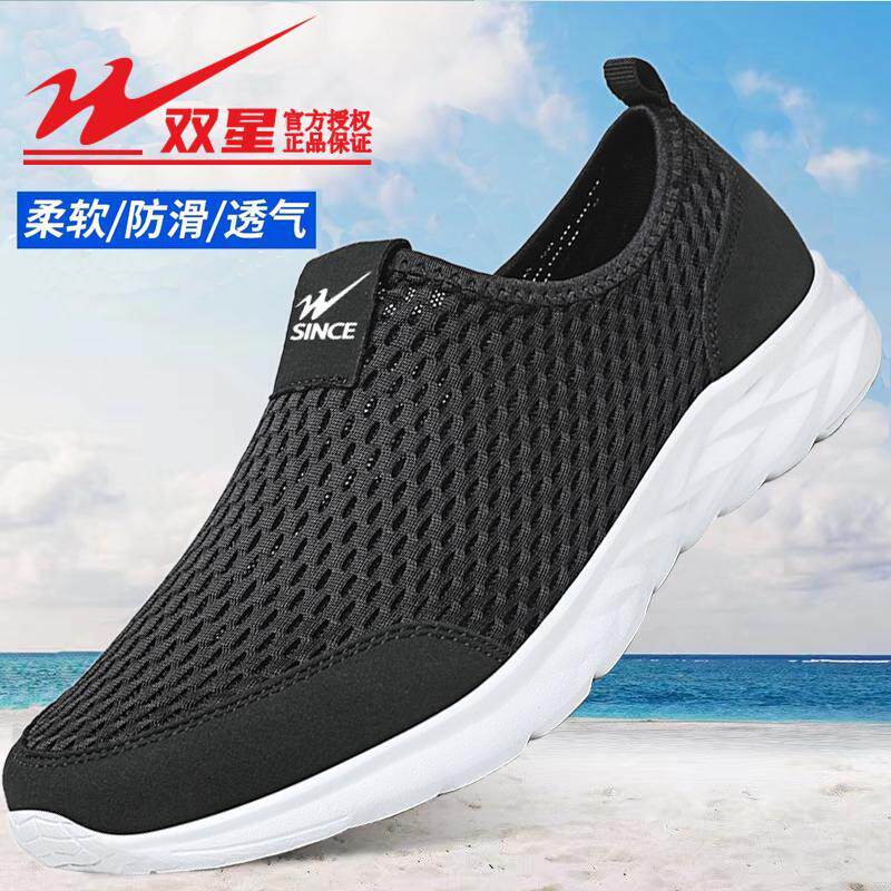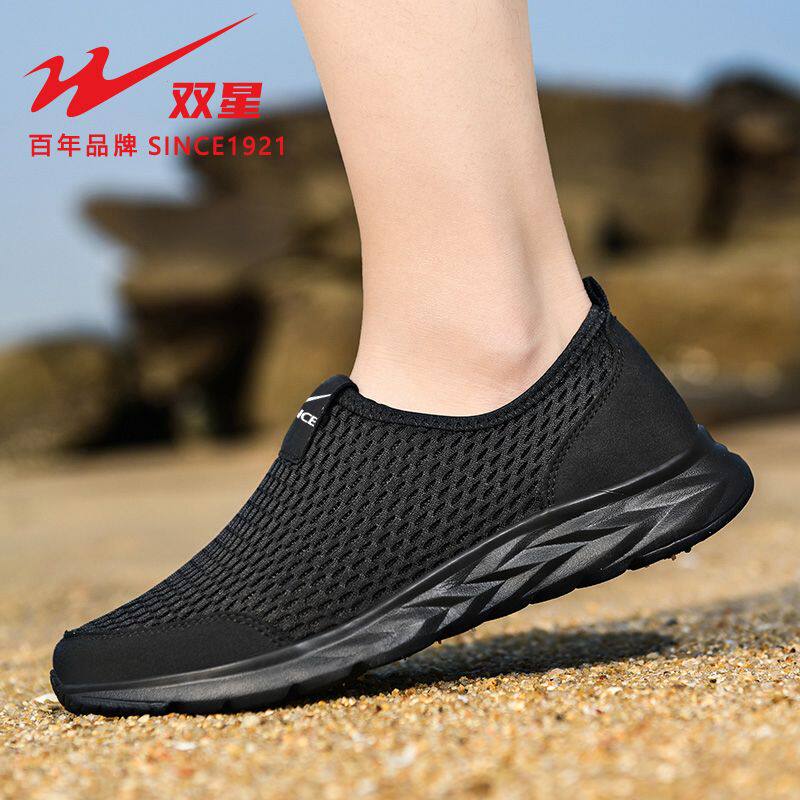 双星网面男鞋夏季新款单网透气休闲黑色运动鞋轻便软底一脚蹬网鞋