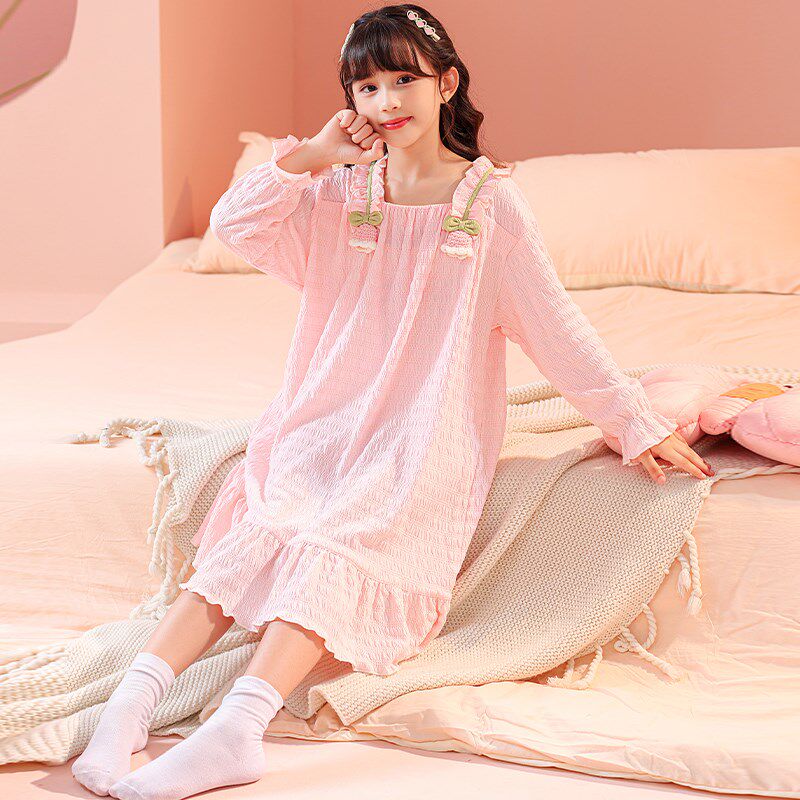 儿童睡裙女童春秋季云朵棉长袖女孩初中生L公主风甜美连衣裙家居