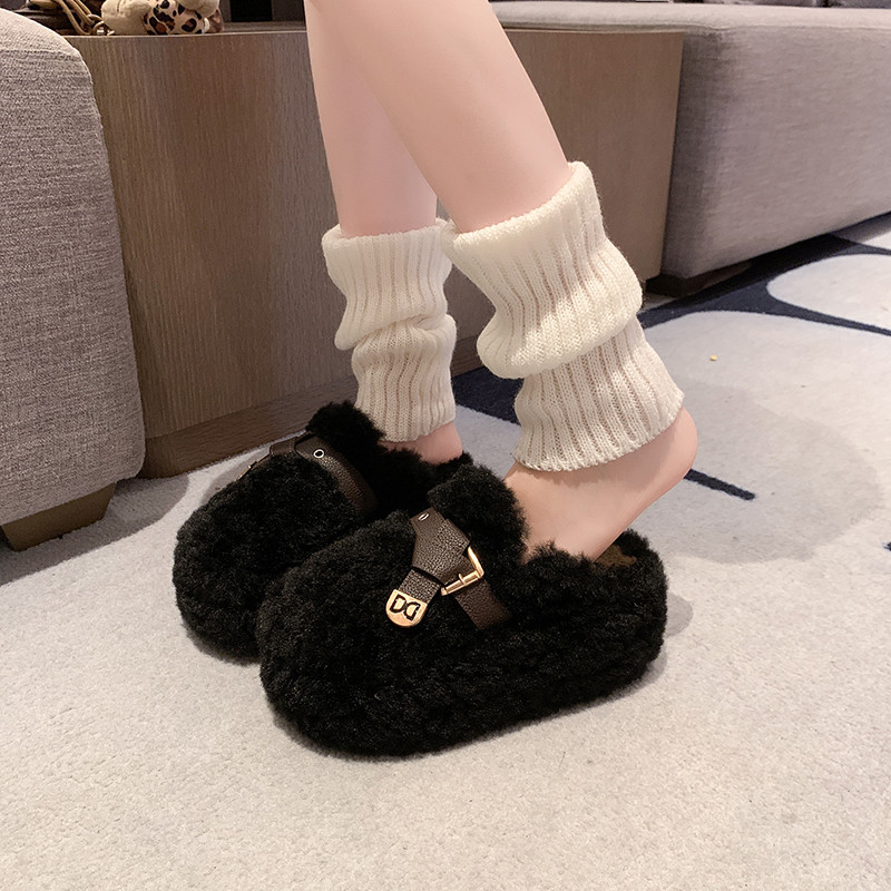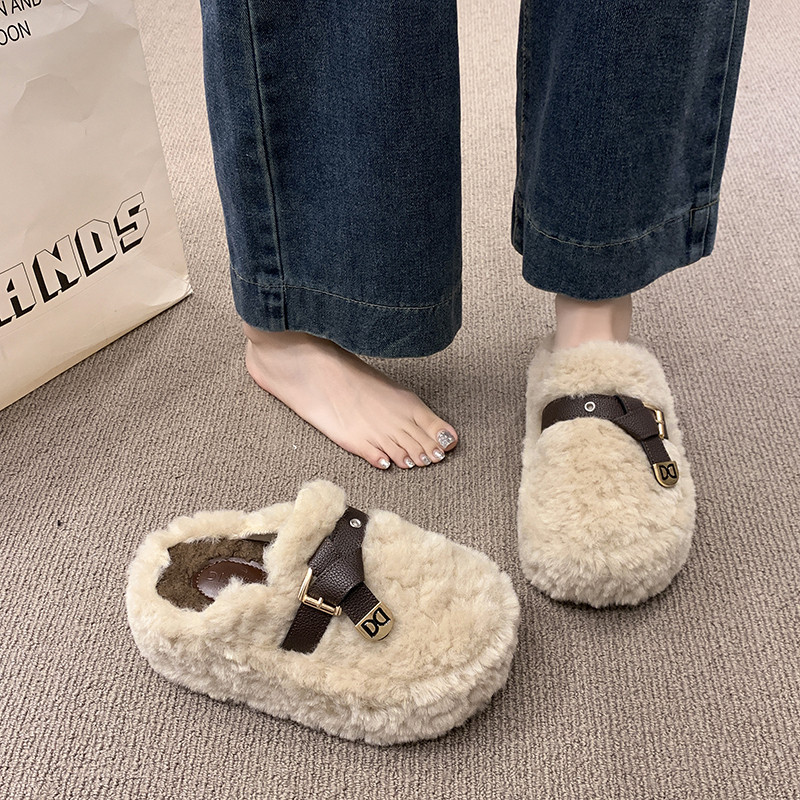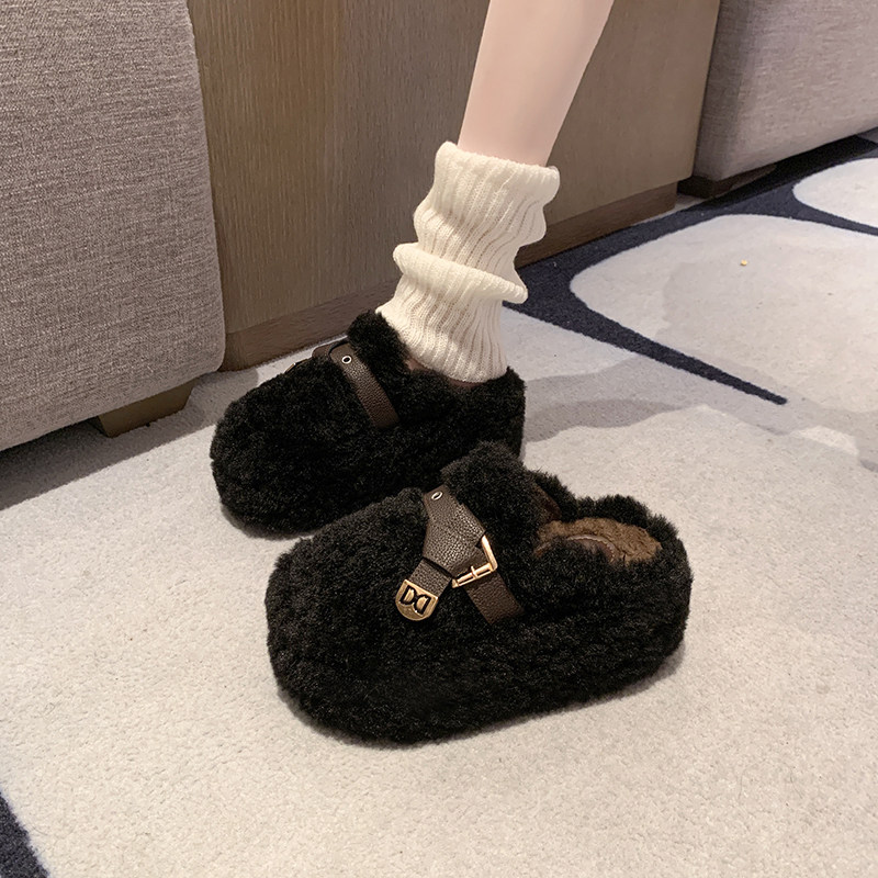 小个子厚底增高8CM毛毛拖鞋女外穿 2026春秋新款加绒包头棉拖34码