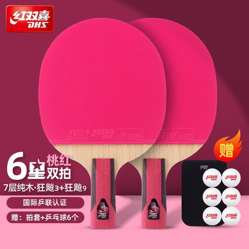 红双喜官方正品乒乓球拍六星狂飙6星彩胶专业级横直成品拍双拍