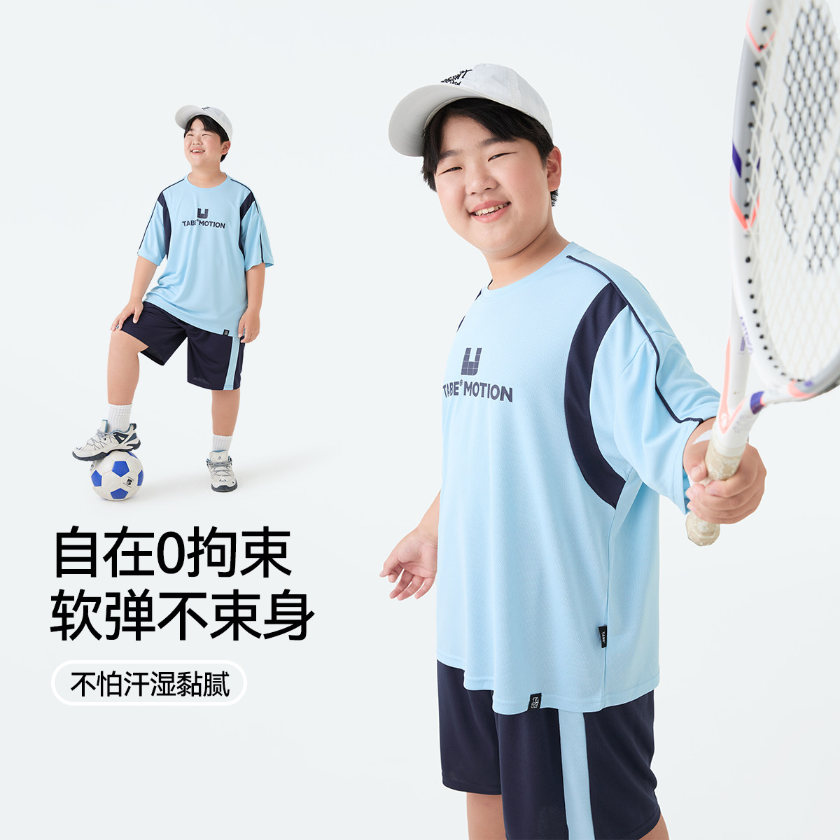 311线报网描述:儿童运动两件套装胖男童打球速干