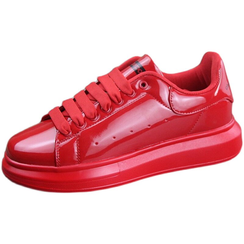 潮牌漆皮情侣内增高板鞋夏季透气红色女鞋百搭学生小白鞋女运动鞋