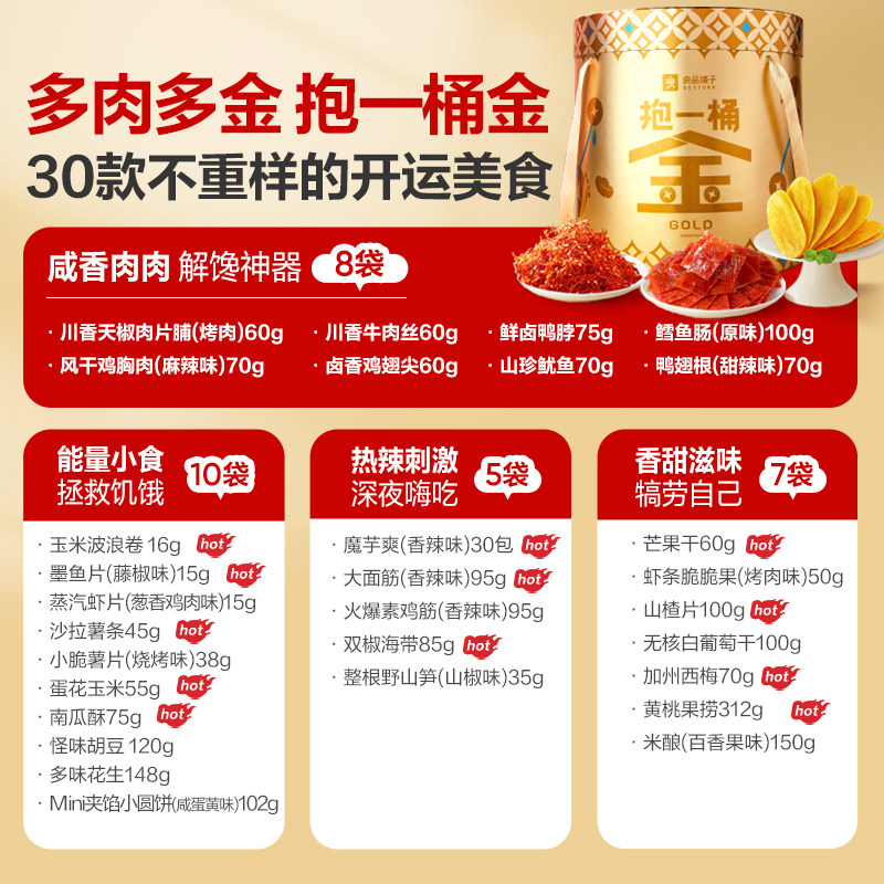 良品铺子抱一桶金零食大礼包超大巨型整箱生日礼物送女友礼盒团购